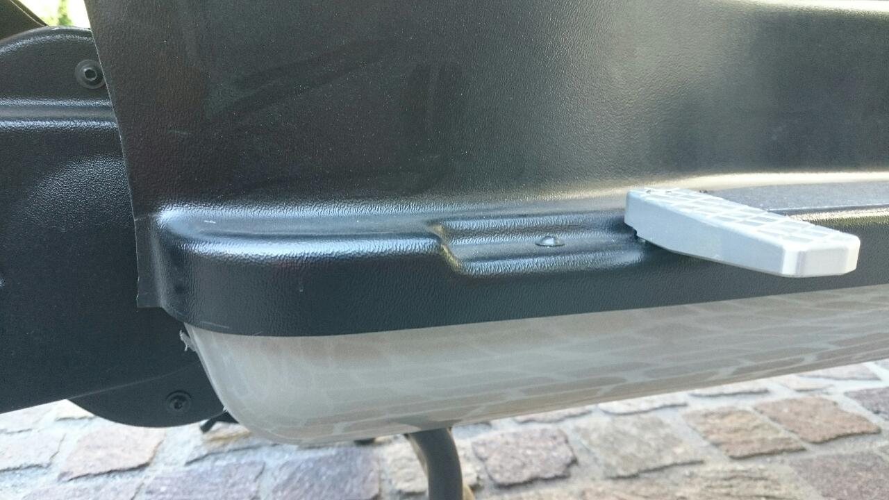 Klar, ist genau dasselbe, zumindest von außen betrachtet. Die zu schwache Blechbrücke ist zwischen den zwei hinteren Befestigungspunkten, unter der Kuststoffverkleidung.