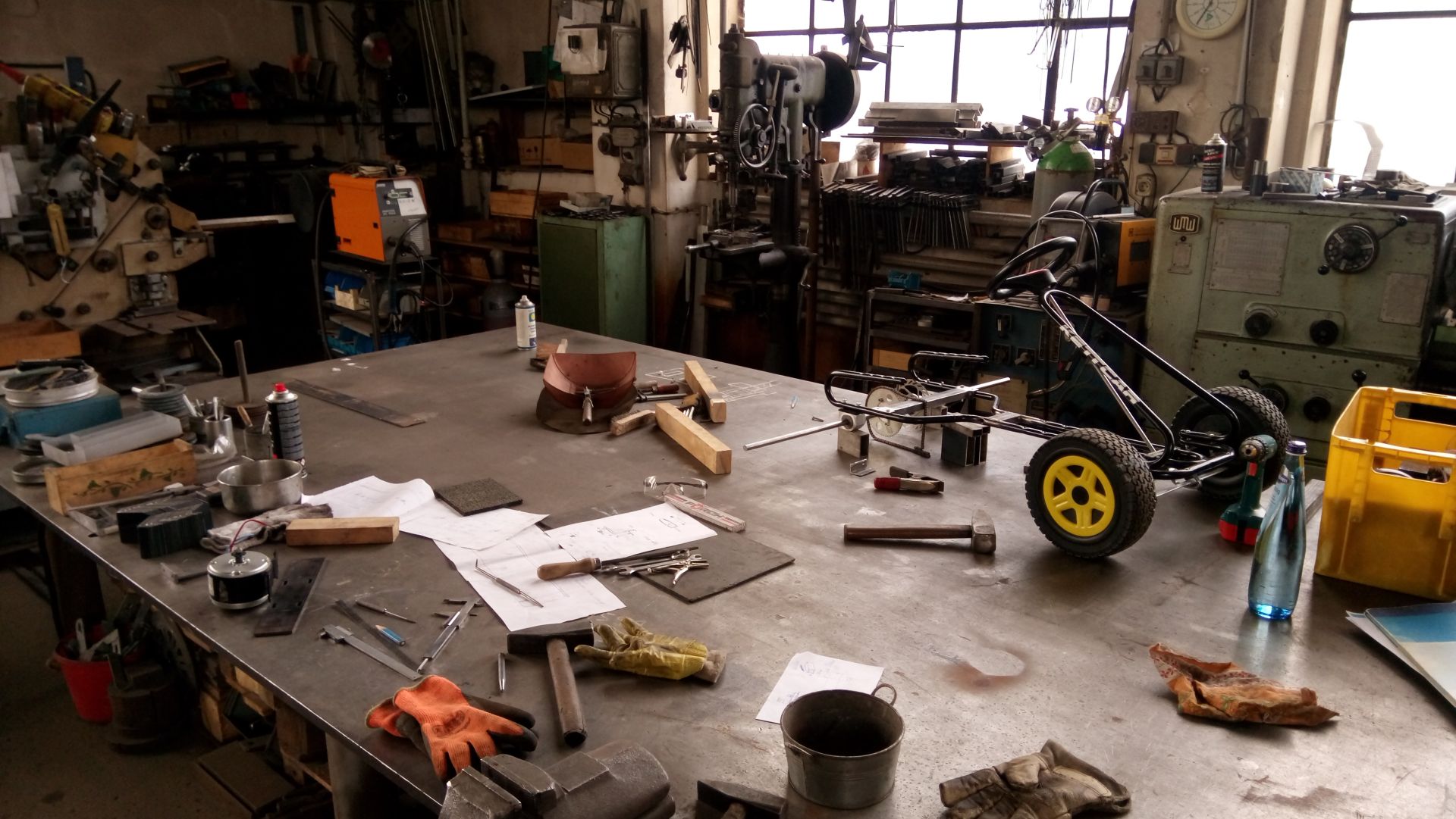 Mittlerweile ist am Kettcar wieder einiges passiert was ich euch nicht vorenthalten möchte. Etwas verspätet nach Weihnachten gings zum Schlosser in die Werkstatt am Chassis schweißen. Der Rahmen für die Bodenplatte und die Motorhalterung wurden geschweißt. Von dem rosa Kettcar (weiter vorn im Forum) habe ich die Idee mit der Hilfsstrebe übernommen. An dieser Strebe werden die Motorhalterung und die Aufnahme für den Bremssattel angebracht. Bei mir ist die Strebe allerdings geschraubt und nicht geschweißt, das ist auch notwendig um die Kette nicht öffnen zu müssen wenn sie mal abgenommen werden soll. Sie hat kein Kettenschloss!