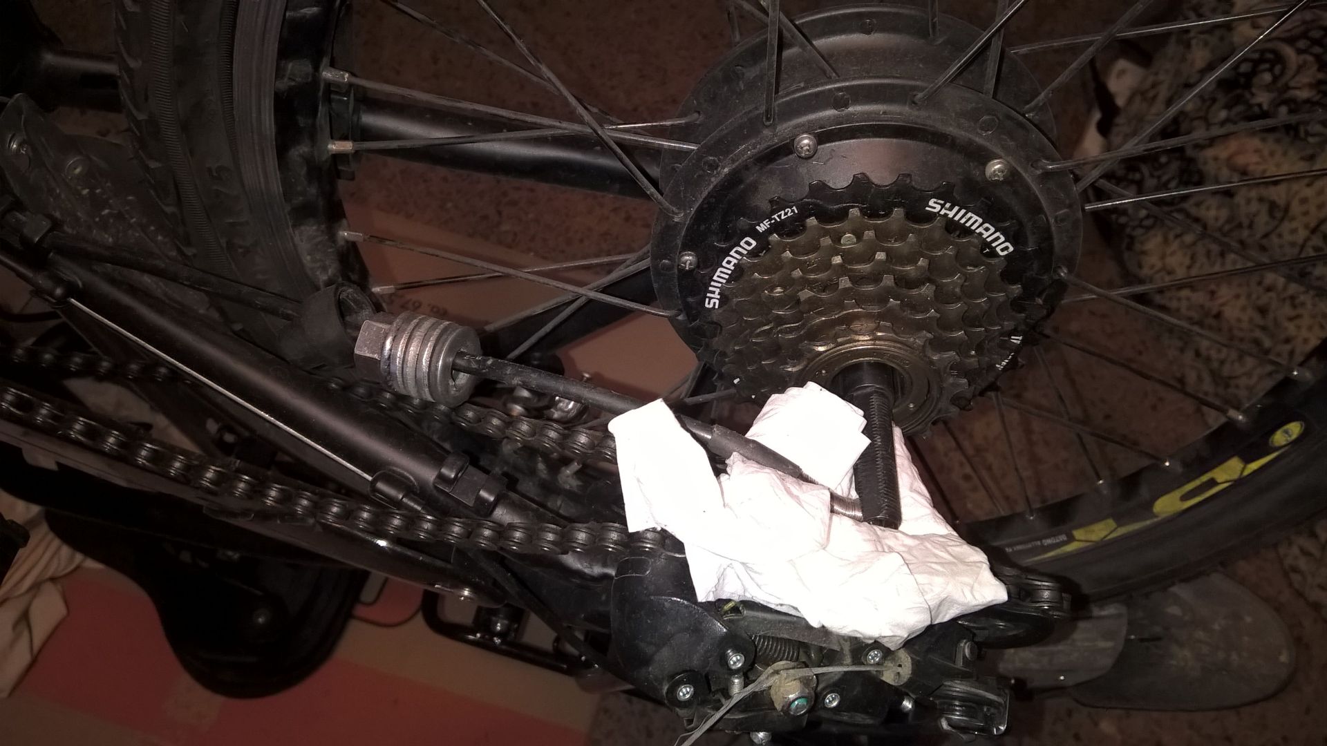 "Bzw.: Ist das verbleibenden Kabelstück nicht lang genug, um das Hinterrad aus dem Rahmen zu bekommen? Dann könnest Du den Reifen und Schlauch von der anderen Seite gut abnehmen und ersetzen."