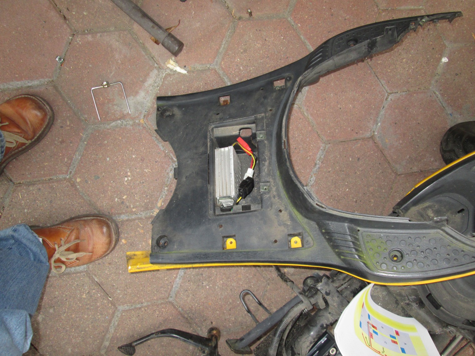 Welche Funktion hat eigentlich das metallisch glänzende Elektronik-"Ding" unter dem Fußbrett? 12V-Versorgung?