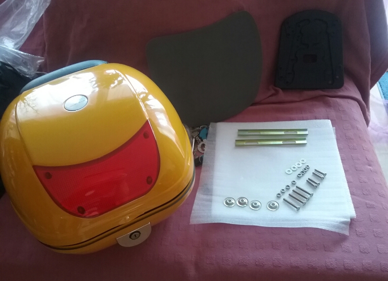der fertig montierte Topcase. Bei Interesse kann ich gern schreiben wo es den gibt. Ist natürlich nicht vergleichbar mit einem hochwertigen case, aber um überhaupt erstmal eines zu haben um meine Tasche während der Fahrt zu verstauen..., ist es für mich so ok.