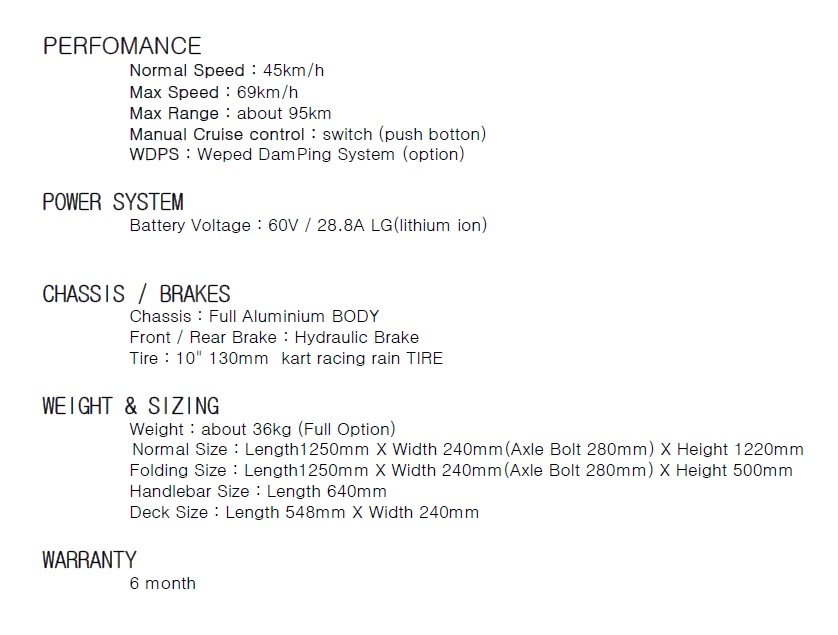 Die möglichen Reifen besitzen bis auf einen (130/50-8-hinten) andere Dimensionen, weshalb legal keine Benutzung im Straßenverkehr gestattet ist, und ein Anbau am Scooter durch die Größenunterschiede Veränderungen am Fahrwerk erfordern kann.