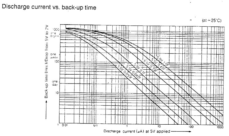 Danach hält der 5,5V/1F bei 1mA Entladestrom bei 5V zwei Stunden.