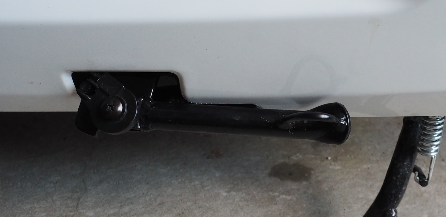 Hier im Form hat jemand den Anschlag abgefext, dann ist der Ständer näher am Roller. Abbauen ist bestimmt nicht so einfach, weil da ja ein Schalter dran ist, der die Zündung unterbricht.