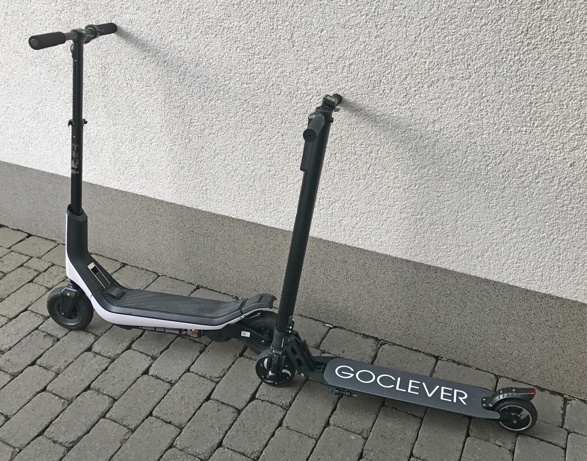 Daher habe ich mir nach einem JDBug und dem GoClever CityRider nun einen Gesutra "City Cruise" gekauft. Der hat einen 350W Motor, 20km Reichweite, 8 Zollbereifung (vorne mit Ventil, hinten Vollgummi), dazu eine Federung vorne. Damit nicht jeder damit losfahren kann, gibts auch einen Schlüssel. Zum Stehen kommt man über eine Handbremse (Trommelbremse hinten). Für die paar Mail die ich den Scooter nutze werde bestimmt super. Die kurzen Probefahrten waren jedenfalls vielversprechend. Nachteil, mit gut 14 Kilo ist er eine ganze Ecke schwerer als der GoClever.