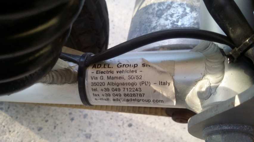 Ich suche allerdings weitere Infos über Technik und Ersatzteile (Speziell Bremsen, Motor und Elektronik) Wegen der geringen Stückzahl gehe ich davon aus, das die Firma AD.EL. Teile zugekauft hat und diese möglicherweise noch über einen anderern Hersteller zu bekommen sind. Auf jeden Fall wird er mit einem Dayco Zahnriemen aus dem Autozubehör angetrieben, und mit 2x 12 (24) Volt 17AH Bleiakkus betrieben.