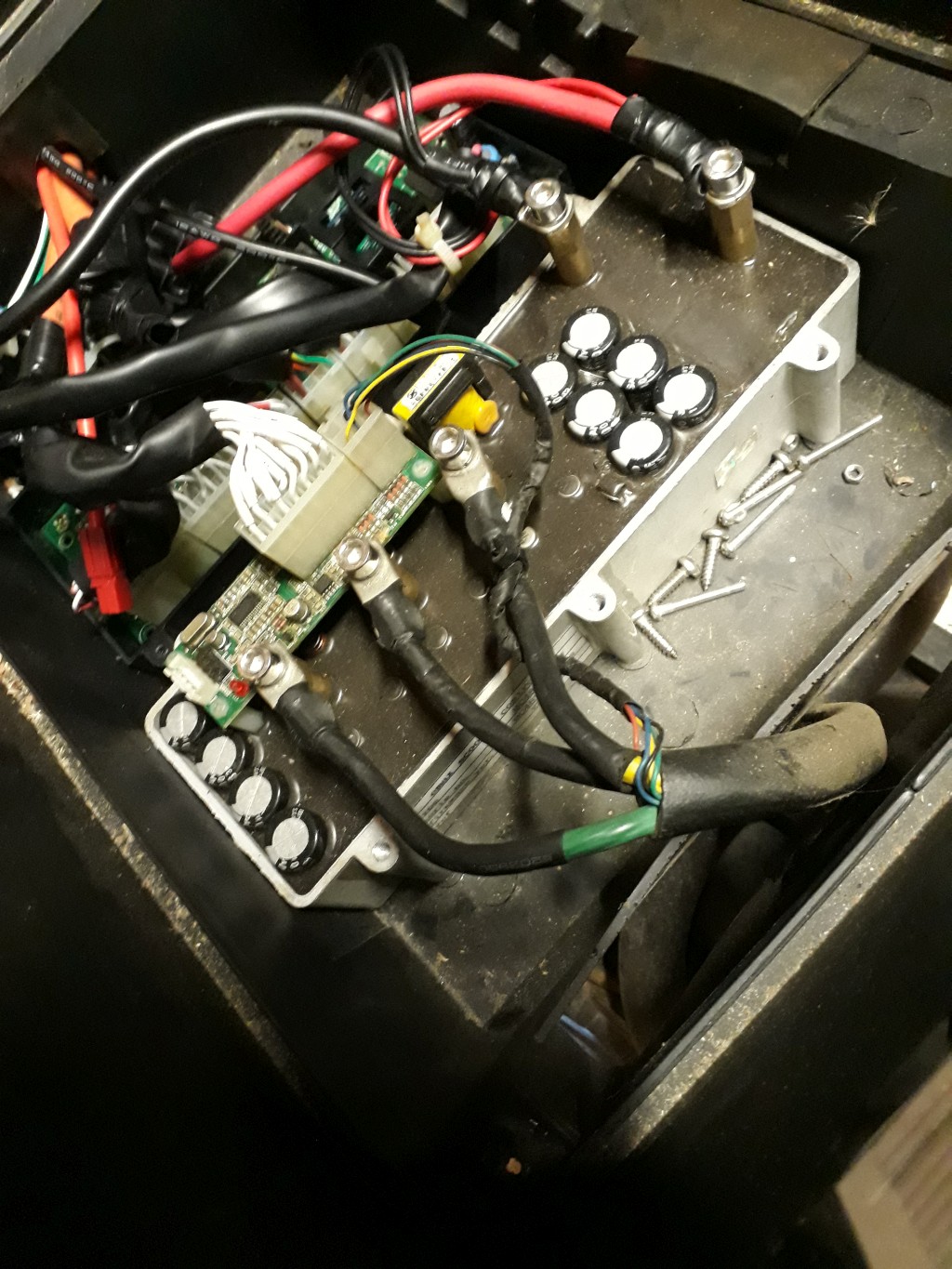 Der Controller sperrt bei 69V (Überspannung). Aber, seine Elektrolytkondensatoren haben nur eine Nennspannung von 63V. Als du mit den Starthilfekabeln die 48V direkt auf den Controller gegeben hast, gab es einen kleinen Funken?