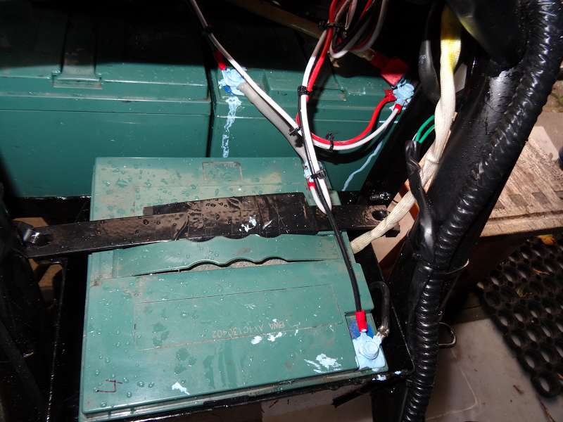 Heute war geplant die Ausgleichslader zu montieren, die Geräte erstmal eine Weile hin und her geschoben und dann einfach die Batteriestrebe einmal kopiert und über den mittleren Batteriesatz verschraubt. Die 3 Lader einmal aufgelegt und die Löcher gebohrt.