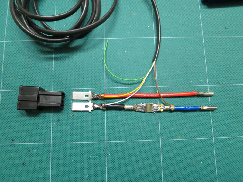 Die 3. Ader kommt an Plus vom Akku und der Schirm vom Kabel auf das Chassis.