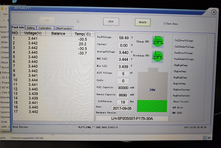 Nun geht es mit dem Akku weiter. Das BMS hat die erste Testverbindung ohne Schaden übrstanden...