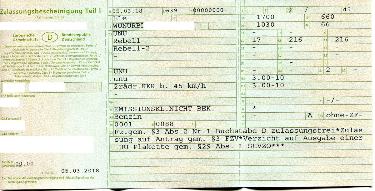 Ich bin zwei Tage todesmutig mit dem alten Kennzeichen gefahren und habe es erst am Wochenende gewechselt und bin gerade eben noch mit dem Leben davon gekommen.chrispiac hat geschrieben: Mi 28. Feb 2018, 22:12Also morgen vor der Abfahrt das neue Versicherungskennzeichen (Hellblau) anschrauben - sonst droht unnötiger Ärger mit der Rennleitung!