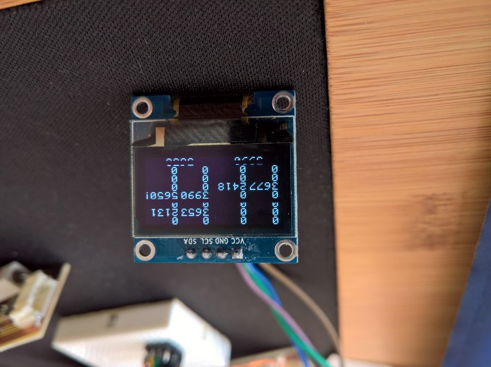 Auf dem Oled wird in der ersten und dritten Spalte die Spannungen in mV (3665 = 3,665 V) angezeigt und in der zweiten und vierten Spalte die Temperaturen in d°C