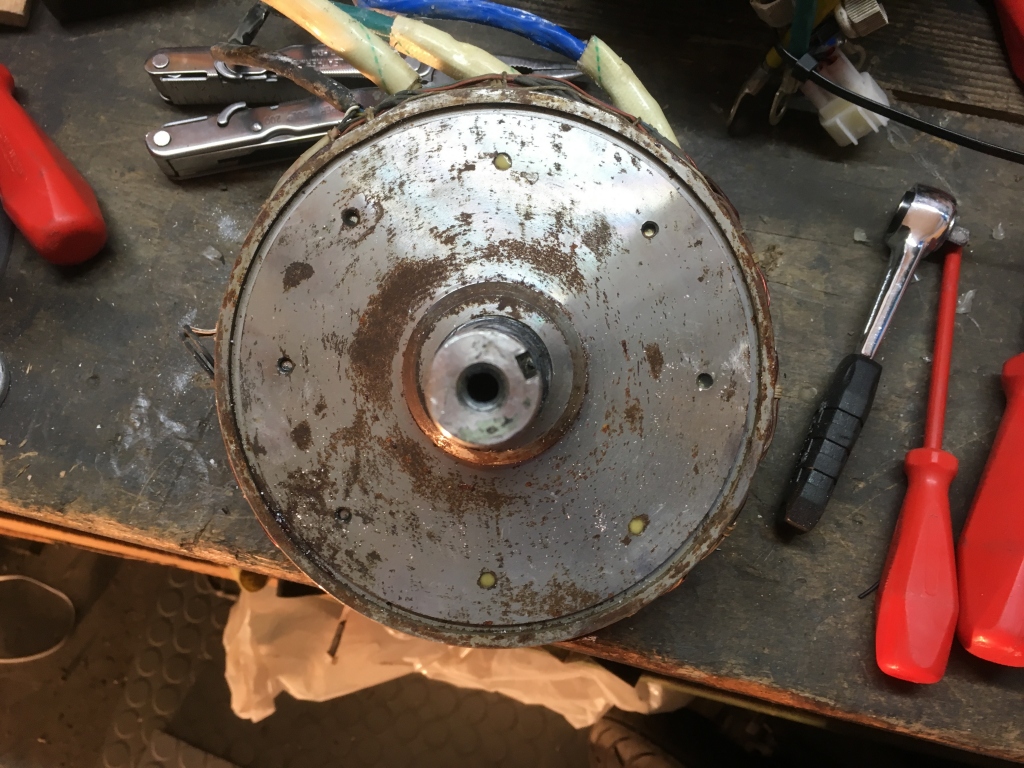 Stator habe ich grob entrostet und wird nach abbinden des neuen Epoxi für die Sensoren mit Klarlack geschützt. Mehr später.