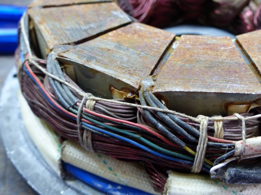 Der Stator war stirnseitig kräftig verrostet: Einige Endlagen Elektroblech sind teils stark nach außen gebogen - das könnte ein Grund für ungleichmäßige Magnetrasten sein...