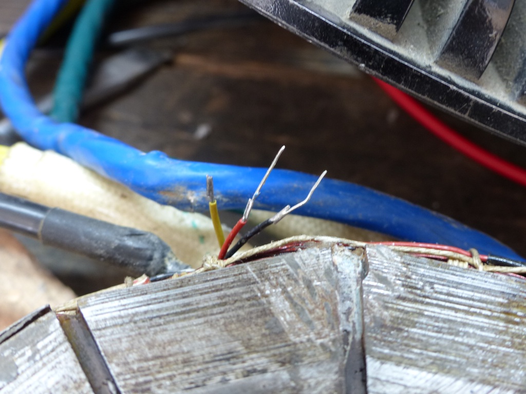 Schlussendlich bekam ich die Reste herausgepuhlt aus dem Stator und dem JB-Weld, so dass ich die drei Sensorfüßchen direkt am Gehäuseaustritt abzwicken konnte.