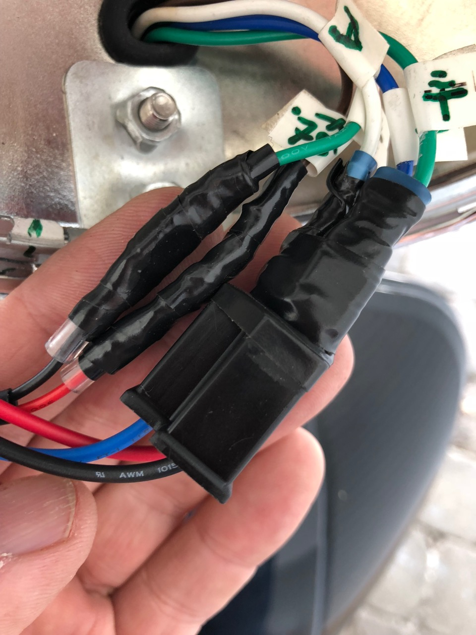 Danach Scheinwerfereinsatz anschließen und gut abisolieren, damit es keinen Kurzschluss gibt.