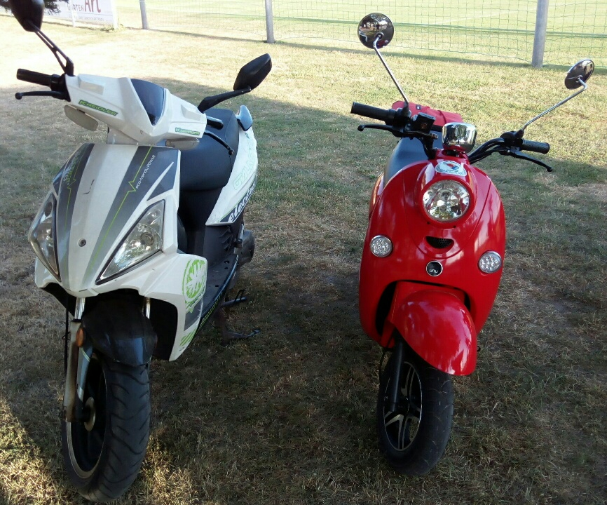 Abends auf dem Sportplatz liefen dann zwei Elektroroller ein. Hier zusammen mit Kreidler Galactica 2.0.