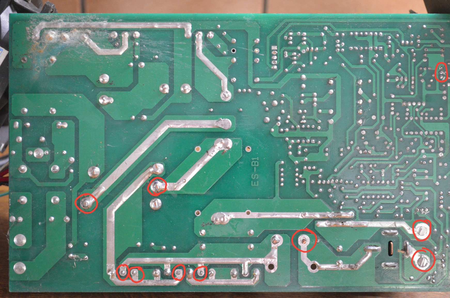 Ich hab dir (soweit auf dem Foto zu sehen) mal einige Kandidaten markiert, wo es sich lohnen würde nachzulöten.
