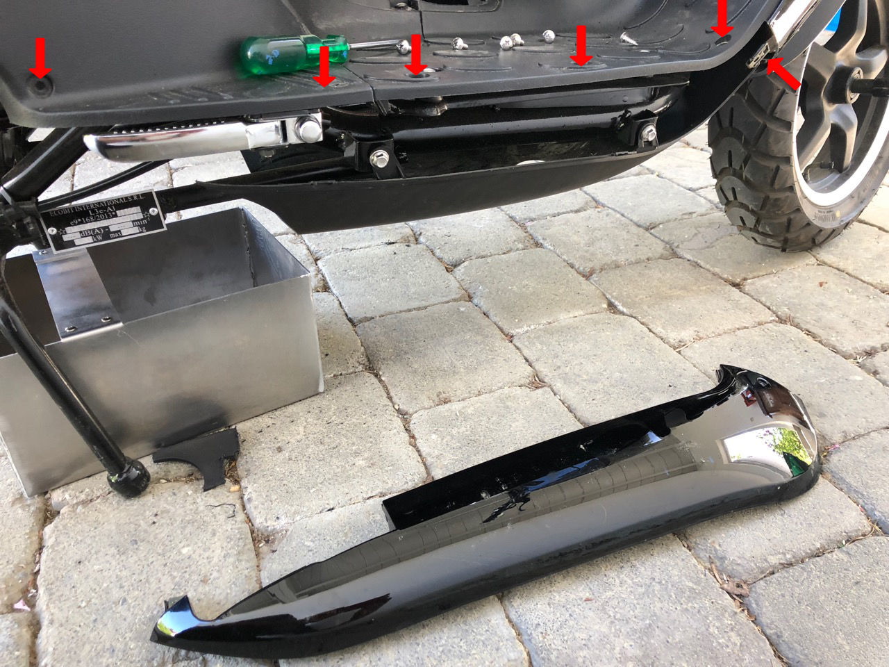 Hier könnt ihr mit einem Kreuzschlitz Schraubendreher die 6 Schrauben lösen und den unteren Teil der Seitenverkleidung lösen. Das gleiche gilt für die linke Verkleidung.