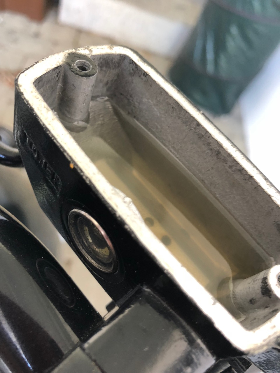Hier nur ein "Lower". Und es ist wirklich so, wenn man die Bremsflüssigkeit darüber füllt, gibt es Probleme z.B. beim erwärmen in der Sonne, dann kann Bremsflüssigkeit austreten über die Belüftungslöcher im Deckel.