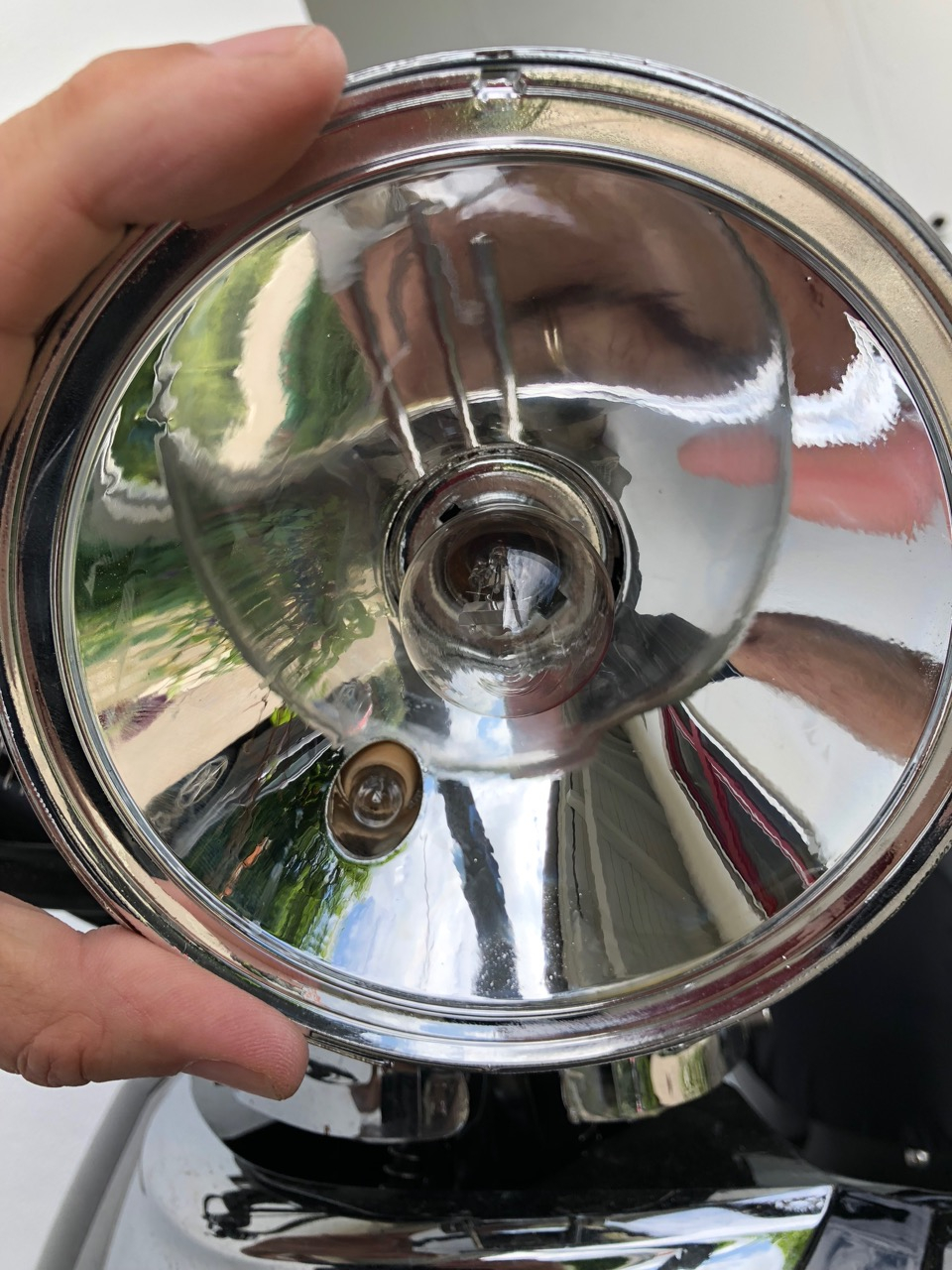 Um die Bilux Birne auszuwechseln ist es notwendig mit einem Kreuzschlitzschraubendreher den Metallring vom Hauptscheinwerfer zu entfernen. Nun kann der Dichtungsring und das Scheinwerferglas mit dem Scheinwerfereinsatz herausgenommen werden. Bilux Birne entfernen (Bajonettverschluß) und die neue Biluxbirne mit einem sauberen Tuch anfassen und einsetzen.