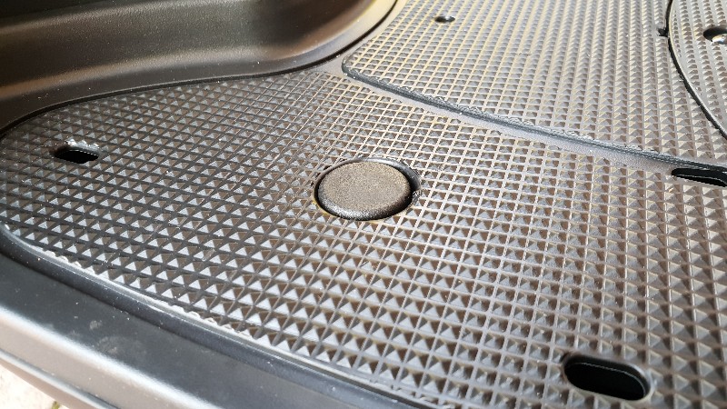 Ich habe passende Kappen gefunden, um die häßlichen Schraubenlöcher im Boden des Fussraumes abzudecken, kosten ca 4€ und gibts in jedem Baumarkt. Habde die Stopfen jeweils mit wenig Einkomponentenkleber fixiert. Wasserdicht solkte man das sowieso nicht verkleben, wg Kundendienst und Rost.