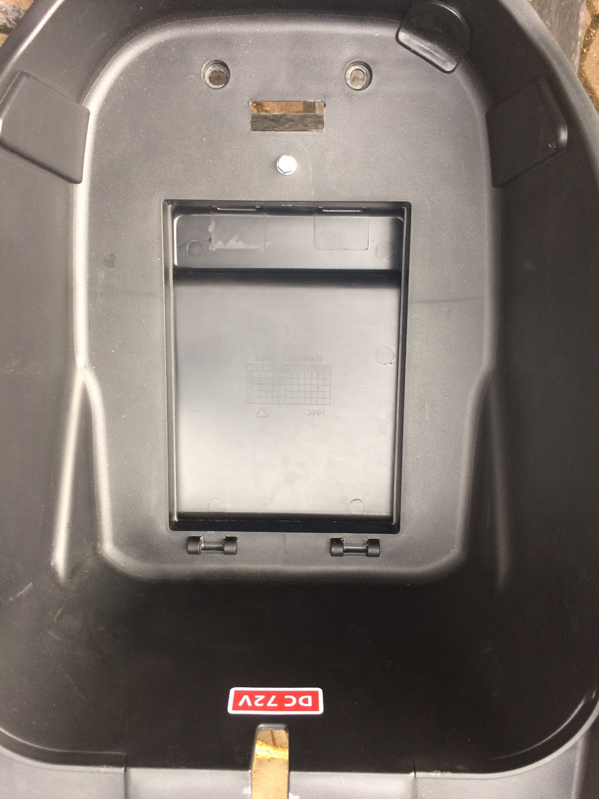 Zum Vergrößern des Helmfachs habe ich jetzt erstmal den inneren Deckel abgenommen, von unten auf die Öffnung gesteckt und mit der einen Schraube wieder fixiert. Ist schon mal besser als nichts. ;-)