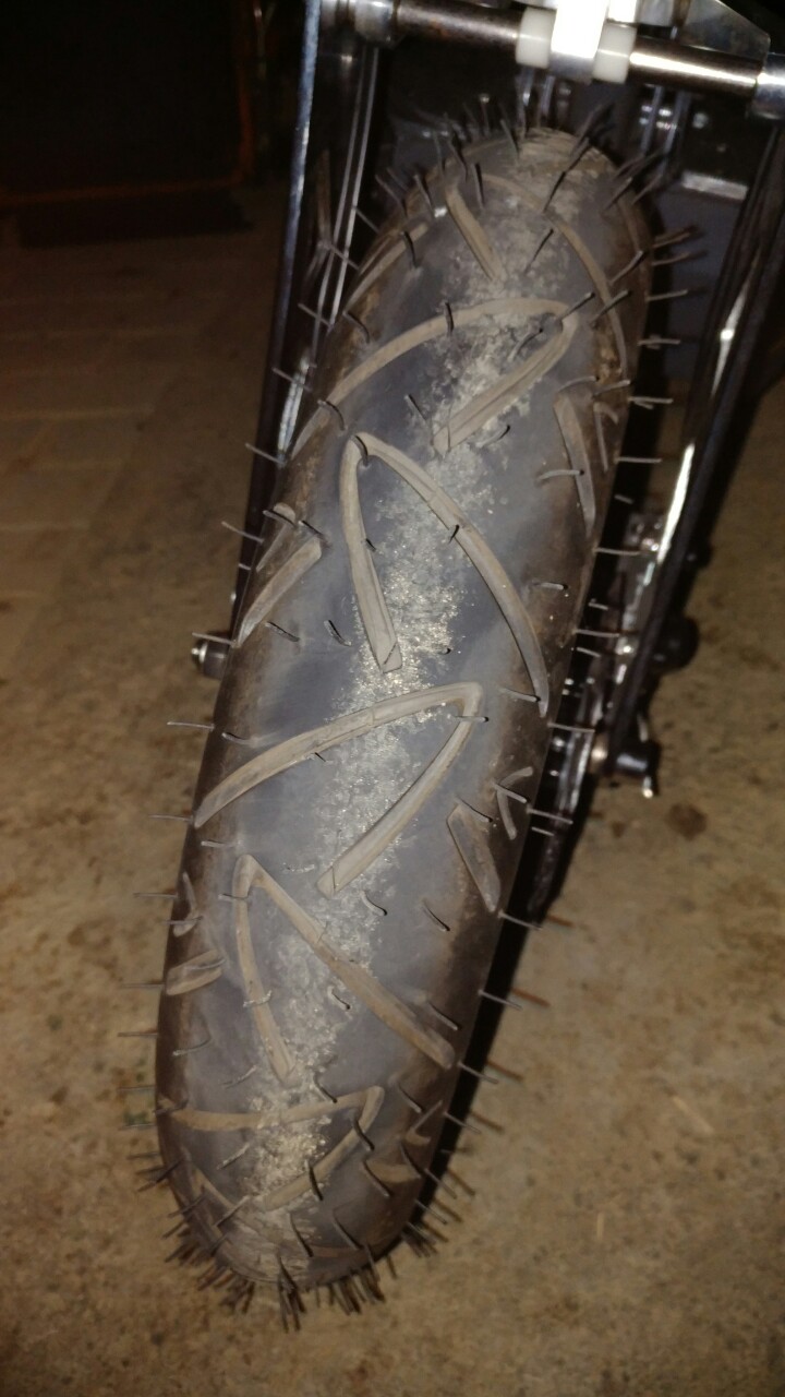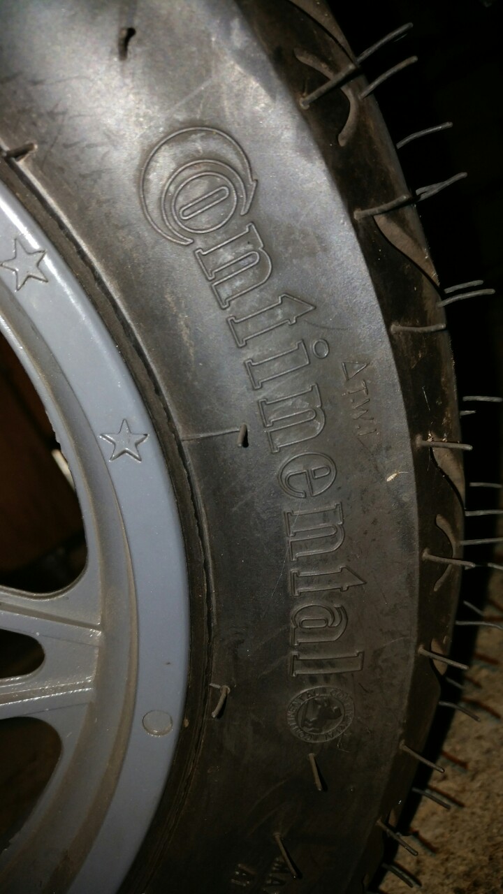 - Stollenreifen sind meiner Meinung nach Quatsch. Ich habe andere aufziehen lassen, was aber auch nicht so einfach geht. Die Reifen sind zwar eigentlich Standardformat (3.00/10 oder so), jedoch passen die meisten Reifen in diesem Format nicht drauf. Da stieß auch die montierende Werkstatt an ihre Grenzen. Ich habe in diesem Forum recherchiert und daher den folgenden Reifen aufziehen lassen: