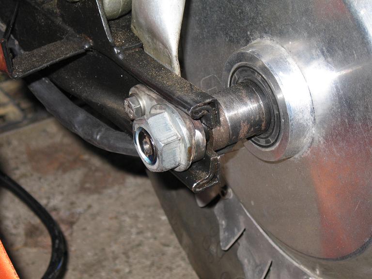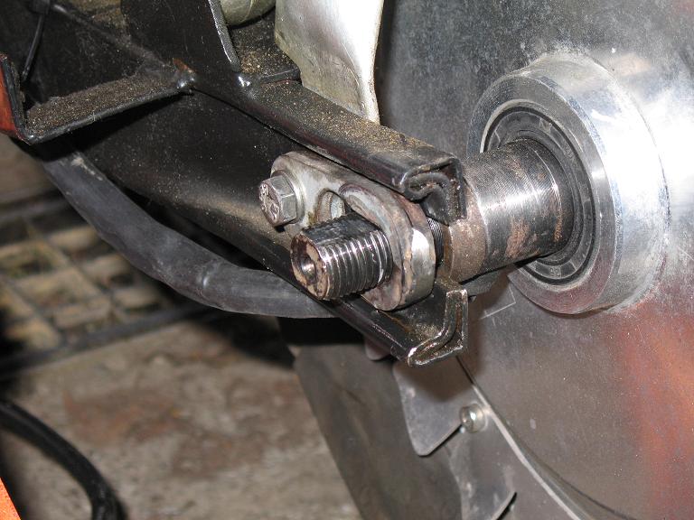 Nun habe ich kein Aderauge - aber es sieht so aus, als hätte die Drehmomentstütze kräftig Luft zwischen sich und der Achse an den angeflachten Stellen. Da haut dann die Achse wieder Macken hinein.