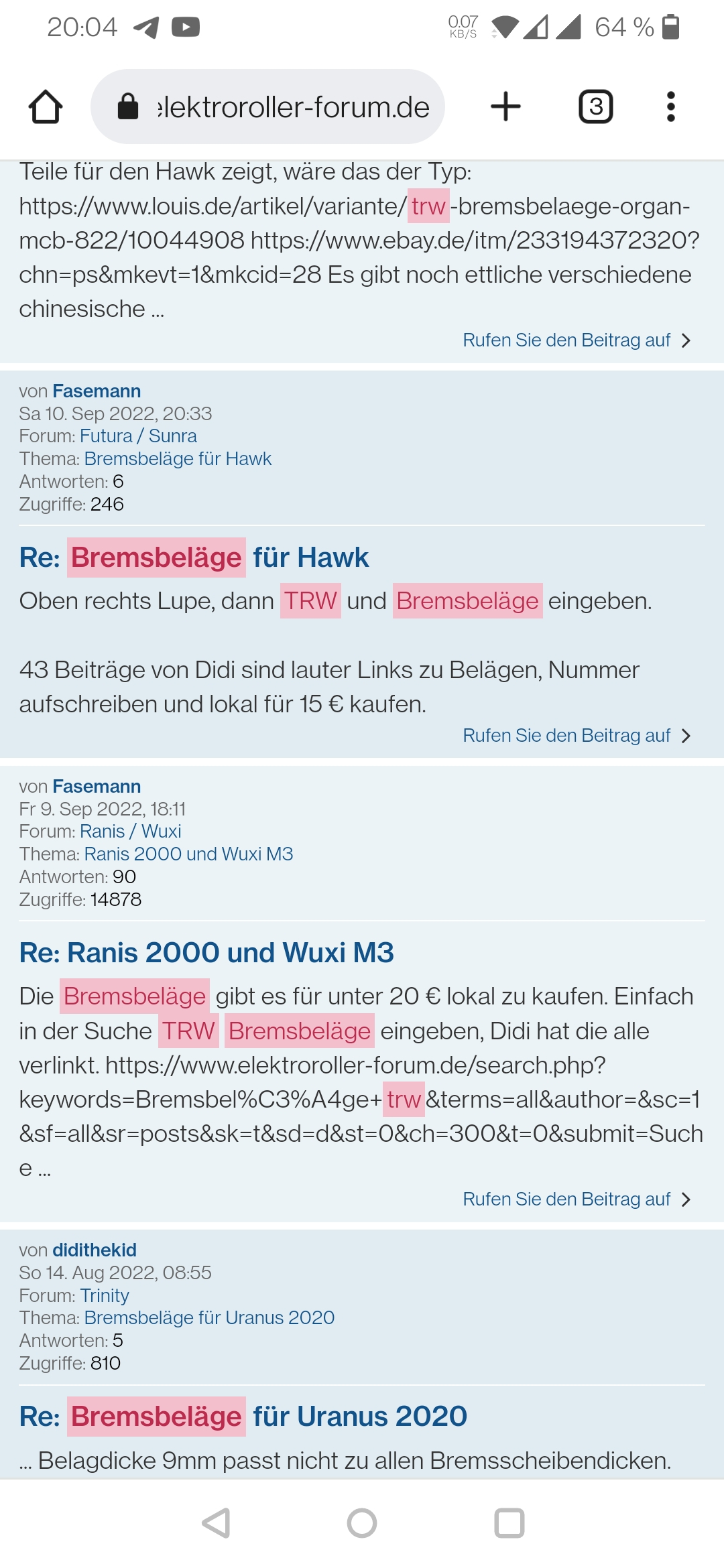 Suchen kann man die Beläge bei Amazon oder bei Händlern für China Roller im Netz.