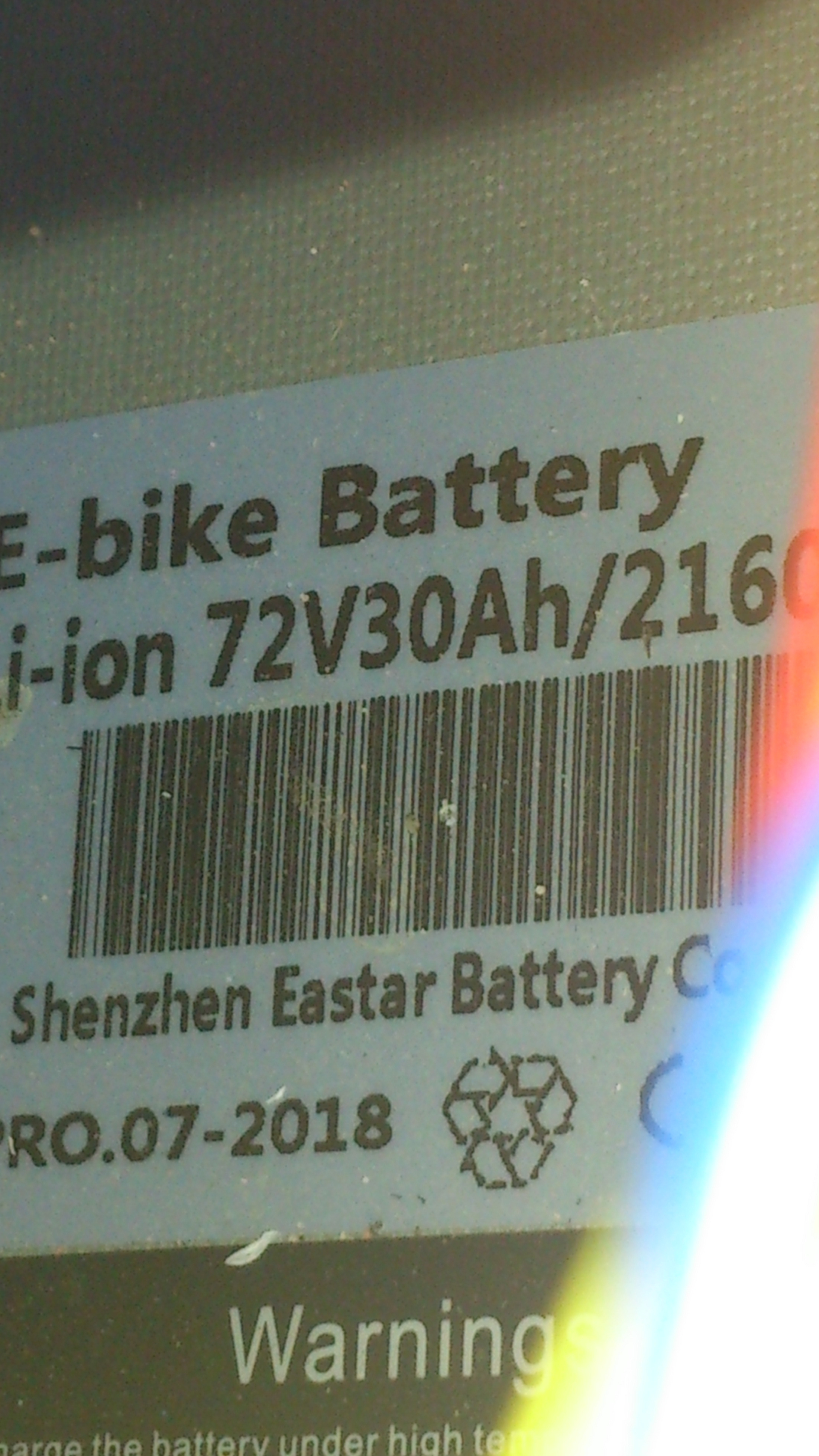 So hier mal mein "Bericht" für meinen LiOn Akku von "Shenzhen Eastar Battery Company" mit 72 V und 30Ah: