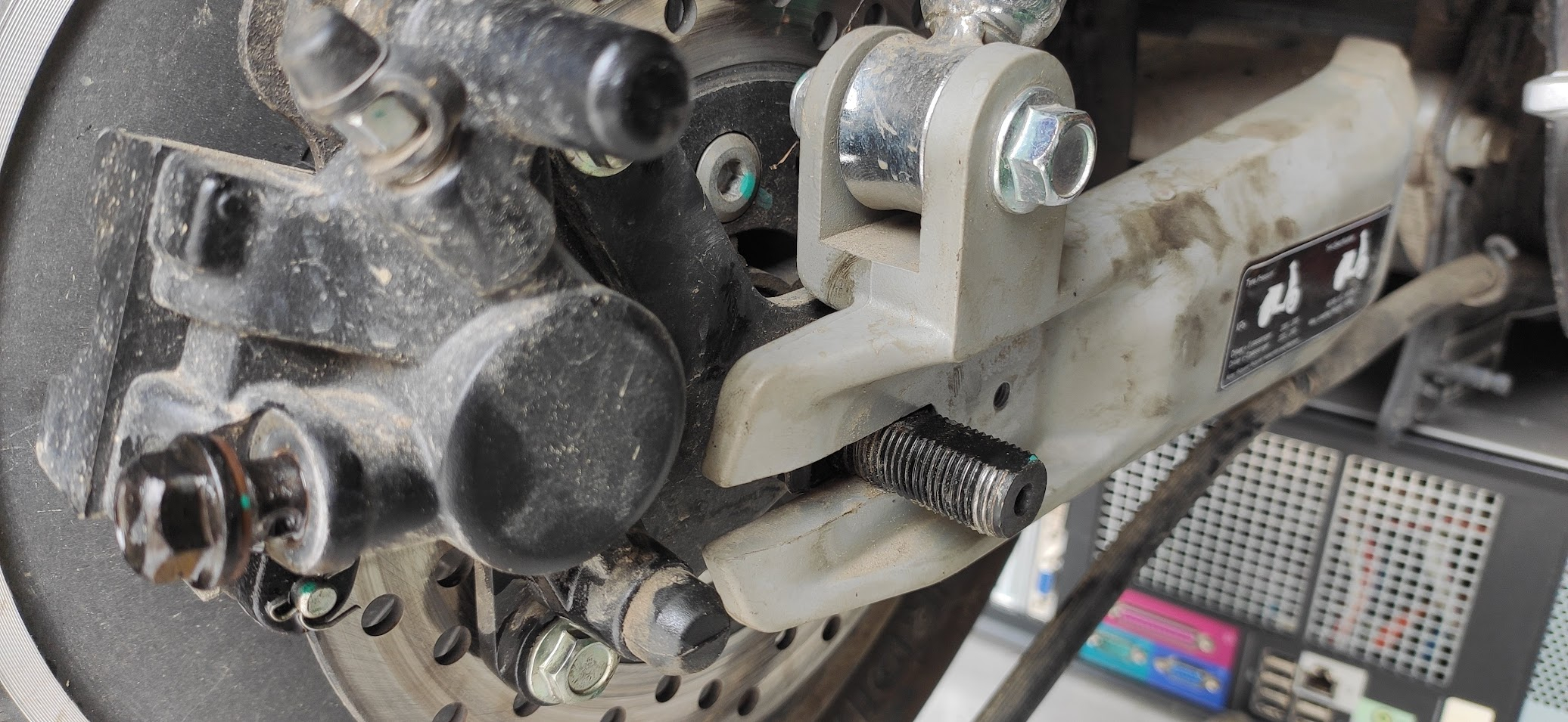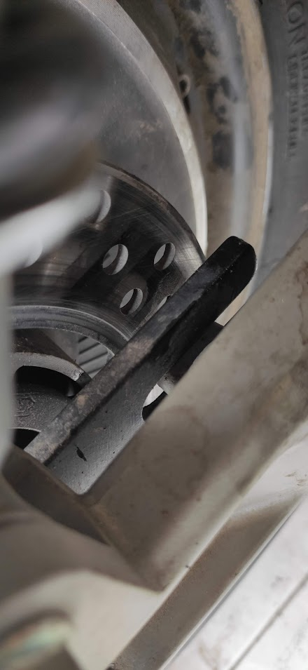 Es scheint so, als hängt das noch in dieser Spange bei den Bremsen fest: Wie ist denn nun der richtige Ablauf, um an den Hinterreifen zu kommen?