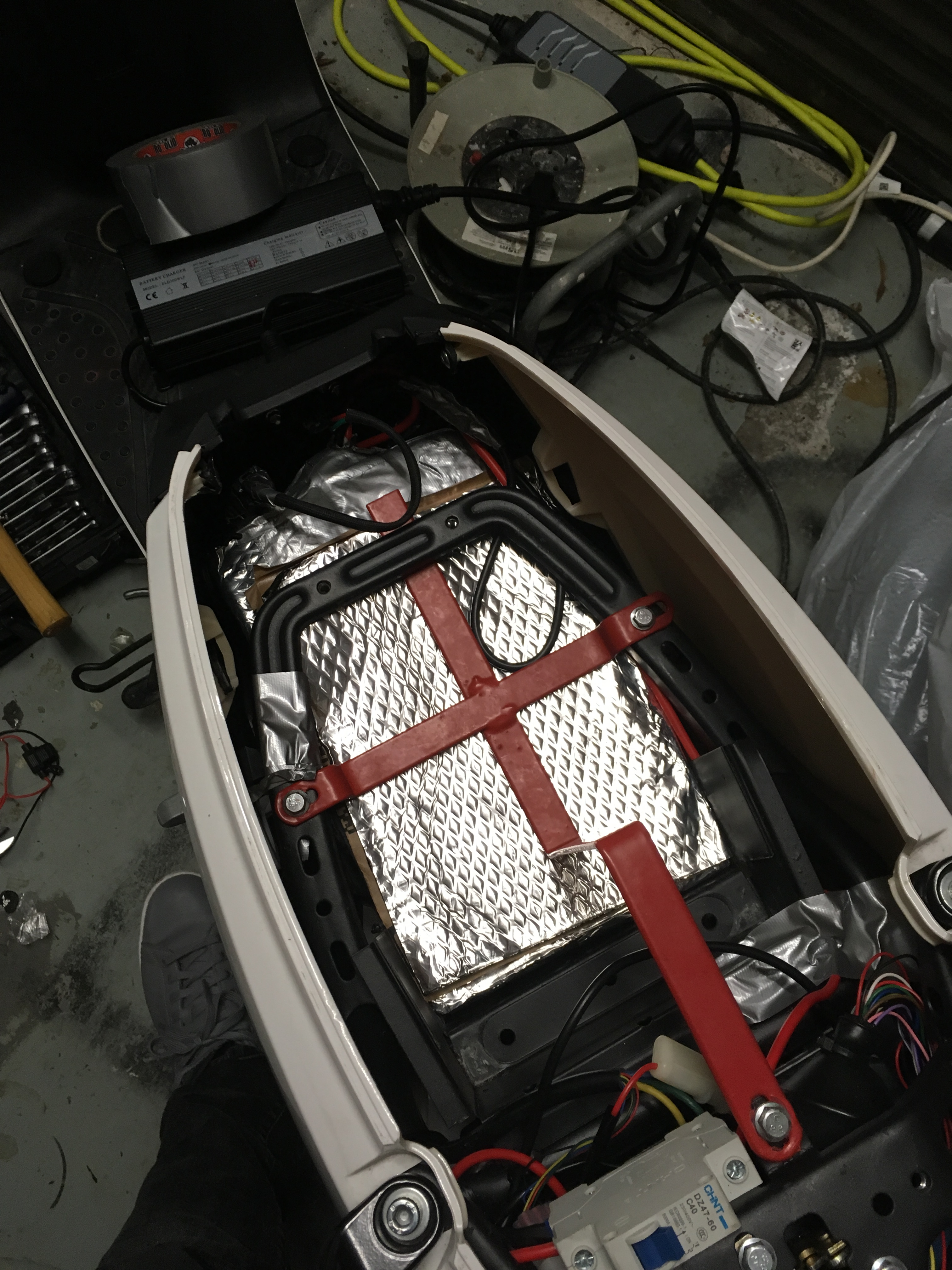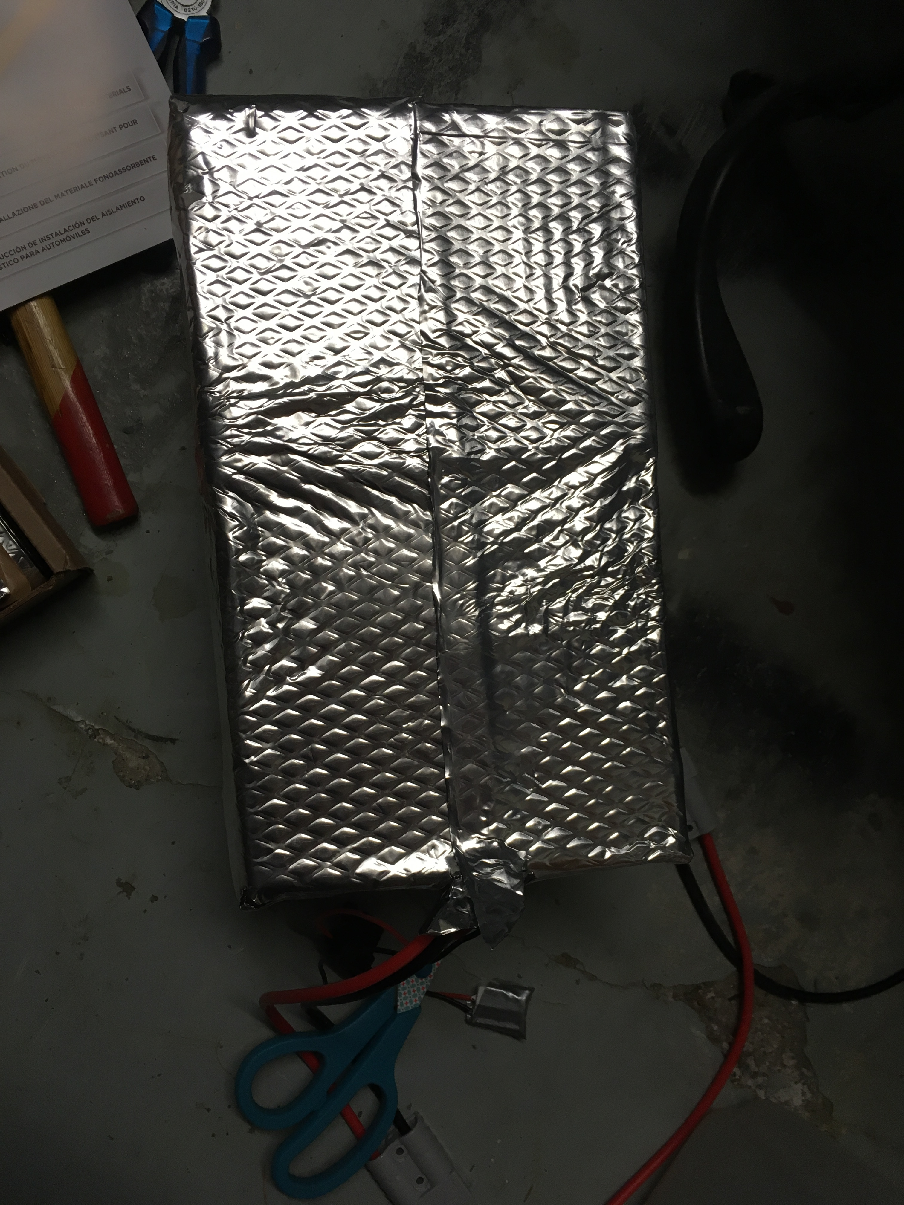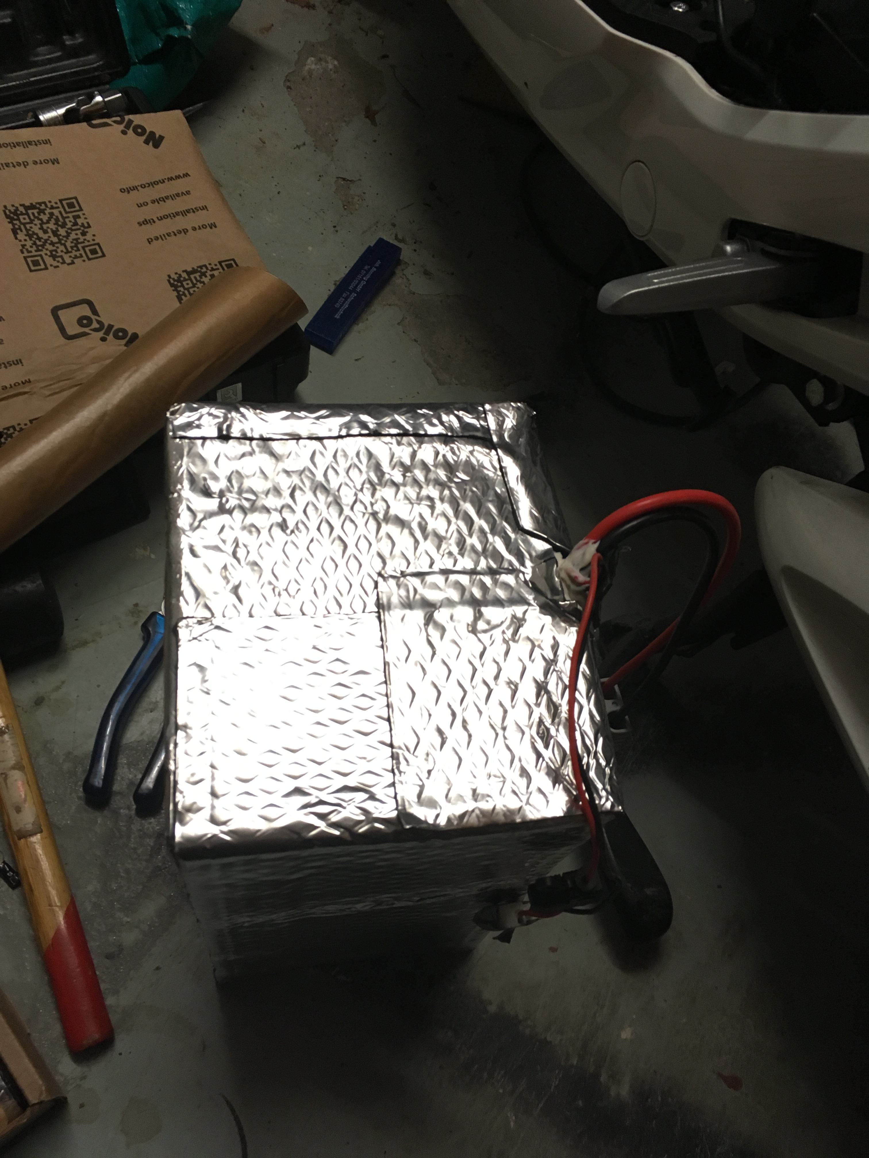 Somit lässt sich das Gewicht auch bestätigen - ca zwei AGM Batterien habe ich geschätzt (20S4P=80 Zellen bei á 140g = 11,2kg + BMS und Isolierung)