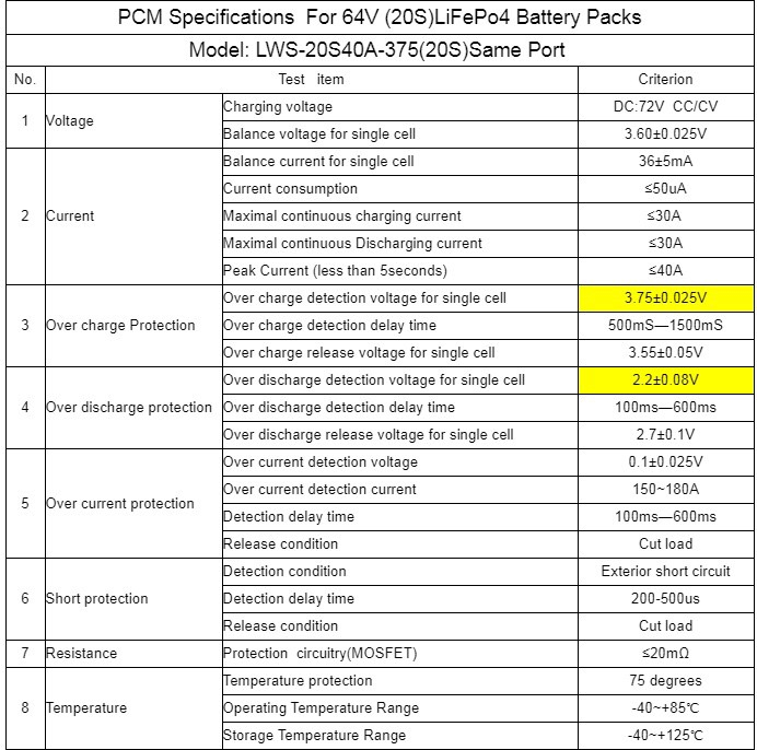 Anbei die technischen Daten der verbauten Akkus. Für die Daten zum BMS warte ich immer noch bzw. habs aufgegeben. Immer vor der Bestellung alle Daten ordern und nicht im Nachhinein. Neukunde ist immer mehr Wert als Bestandskunde ;) Details im PDF, Übersicht hier als Screenshot: