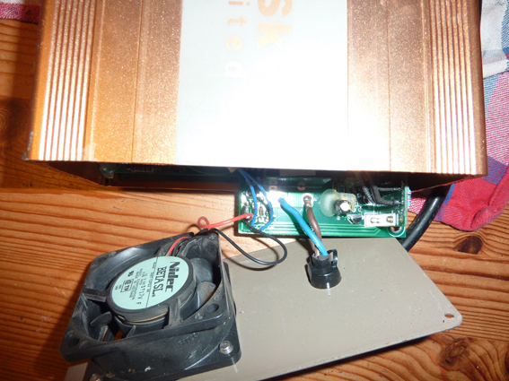 Das ist eindeutig der Ausgang Richtung Batterie, Lüfterseitig. Wie schon weiter oben geschrieben: braun ist Plus, blau ist Minus. Diese Kabel sind also mit dem Plus- und dem Minuspol der Batterie zu verbinden. Zum Rest lasse ich mal lieber einen Solar-Fahrer ran, auch wenn der Roller aus derselben Konfektion stammt wie meiner, es ist ein anderer Typ.