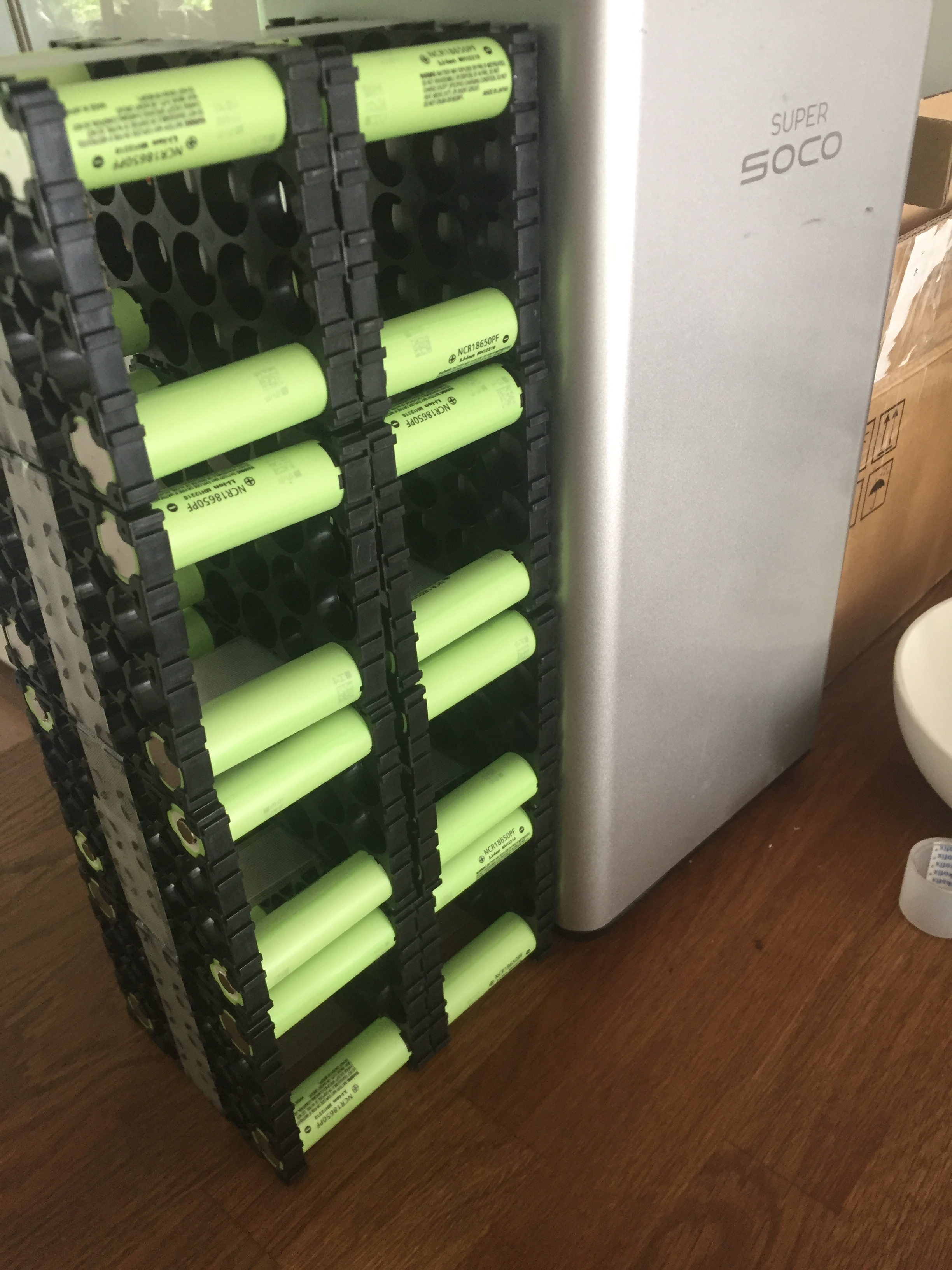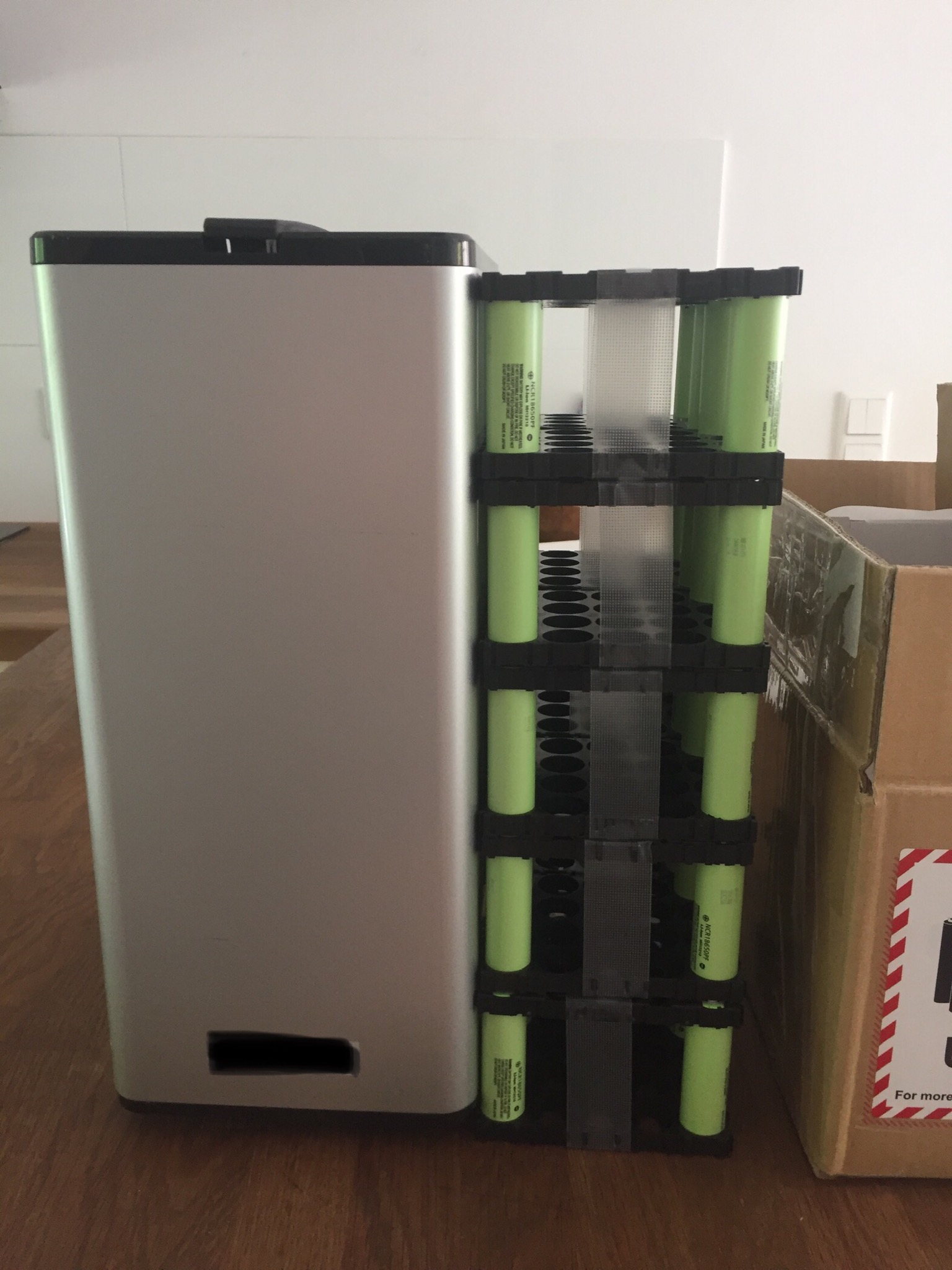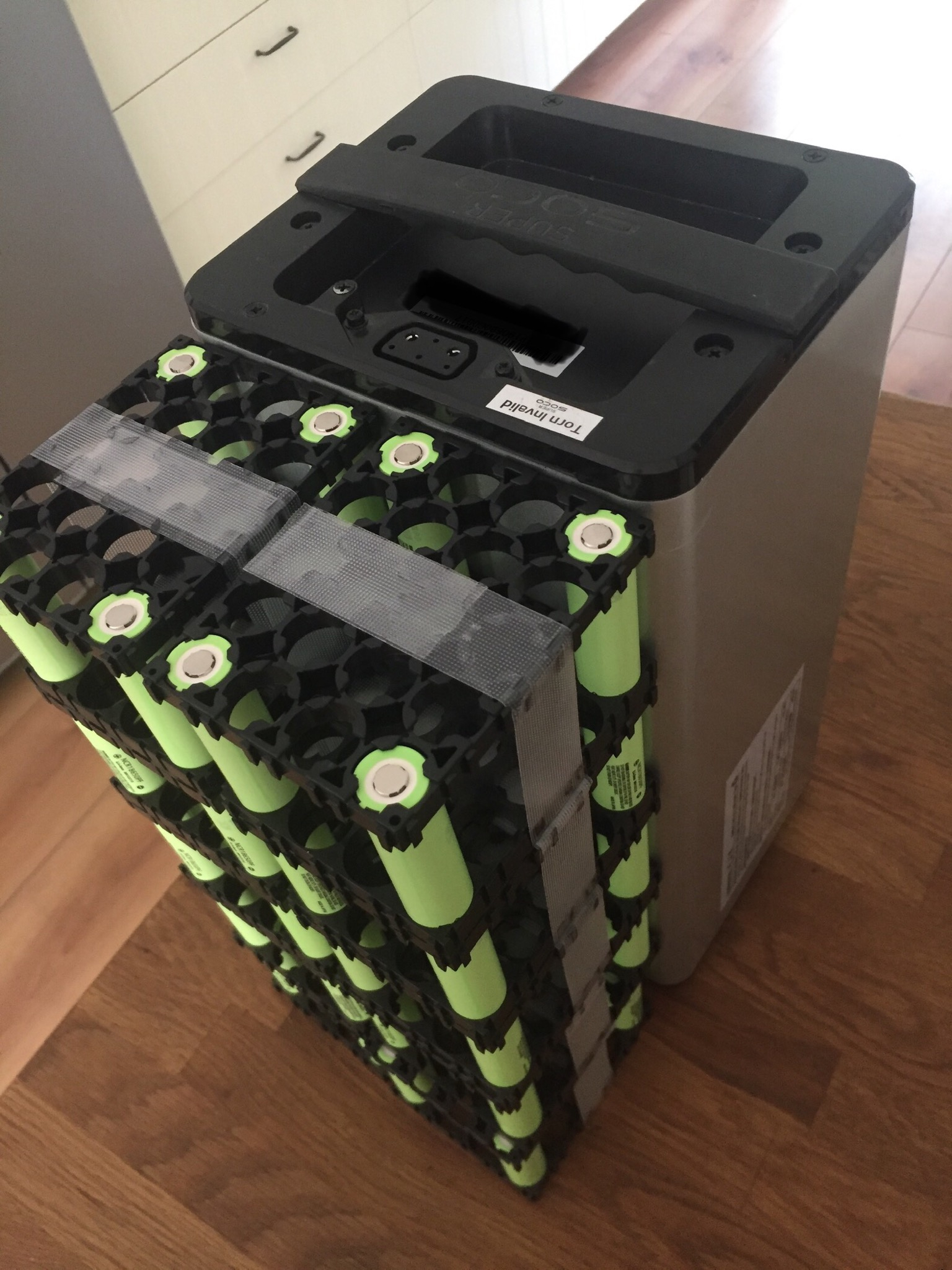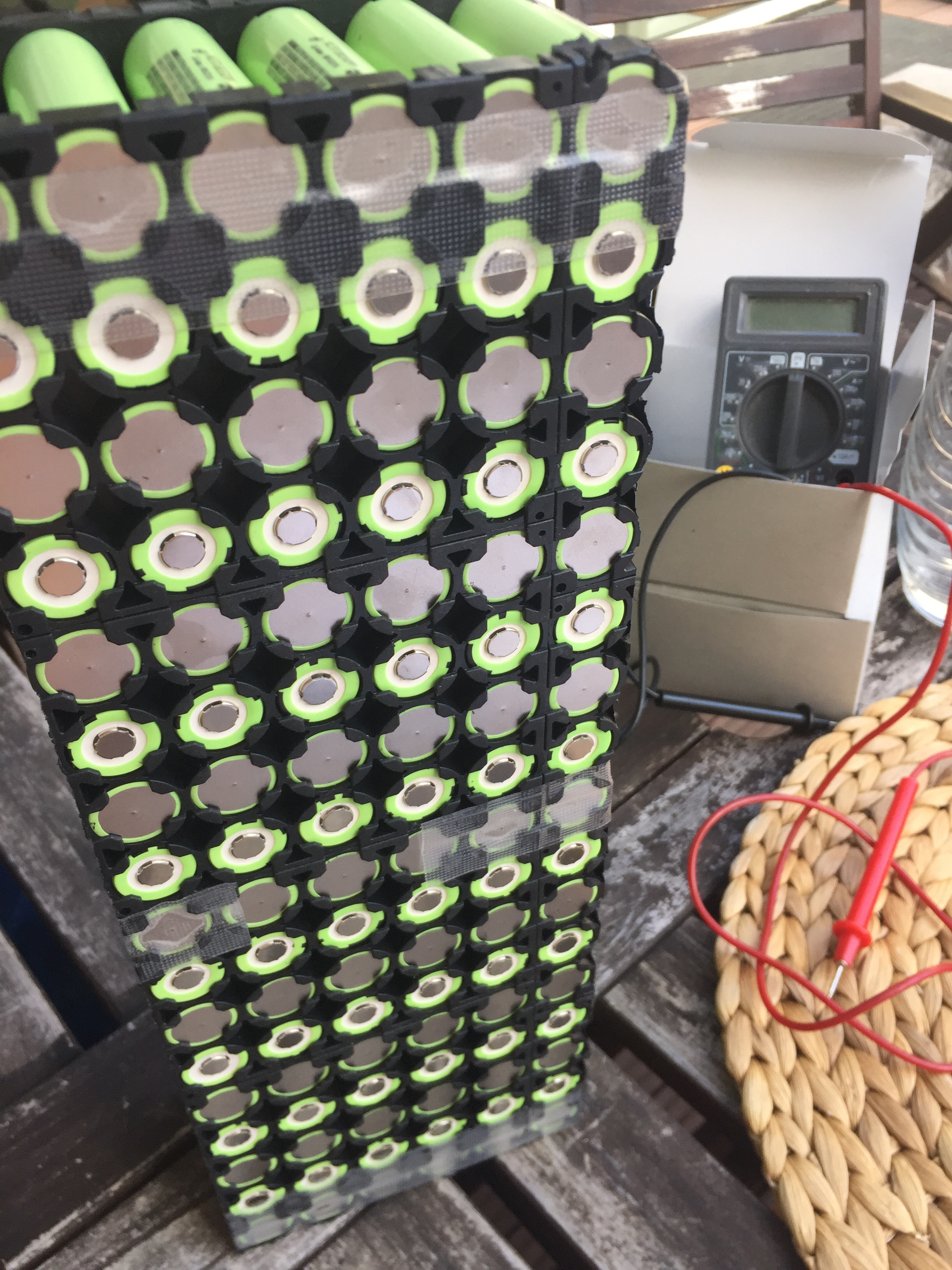 Momentan sieht es nach 17s 11p aus (61,2 Volt / 31,9Ah)