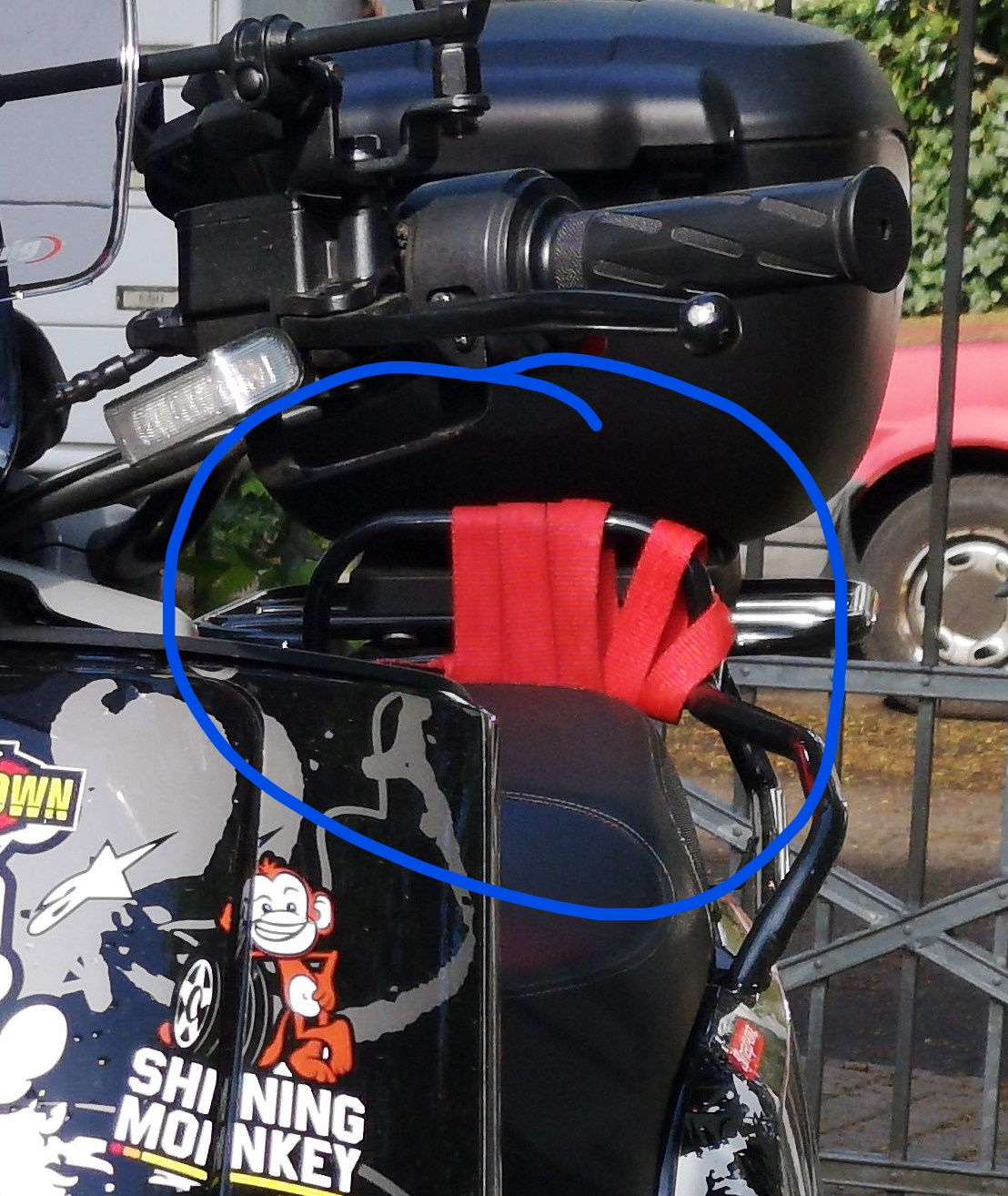 letzte Frage (hoffentlich): wie hast du da das Topcase drauf fest bekommen?