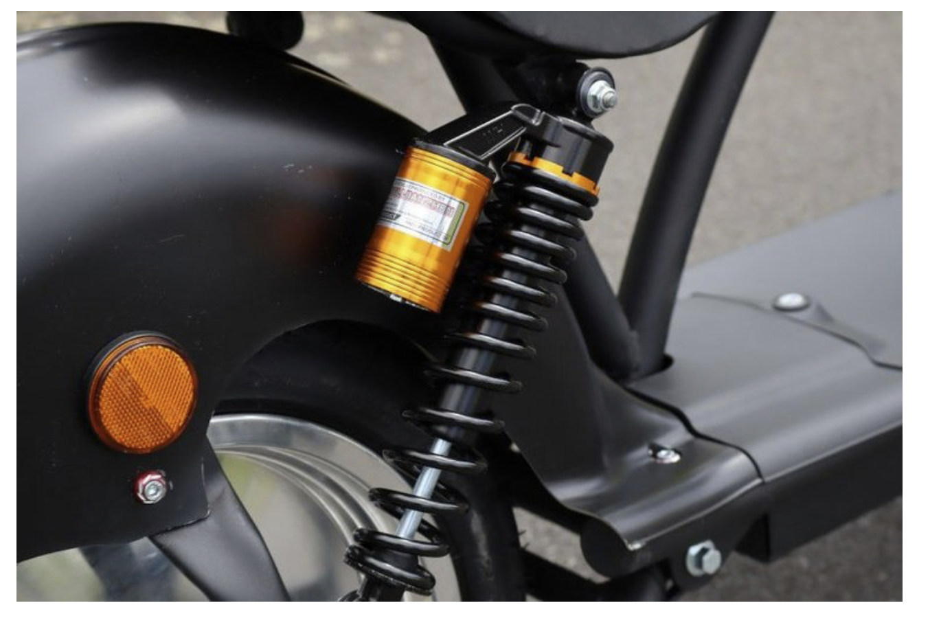 Mittlerweile gibt es aber ein Nachfolge-Modell, das (im Moment noch) allgemein als Citycoco „Cobra” angeboten wird. Da hat das, was wie ein „Tank” aussieht bei diesem Modell eine geschwungenere Form und optional sogar einen zweiten Akku (unter'm Sitz). Und vor allem: So weit ich den Markt im Blick habe, haben die aktuell angebotenen Cobras immer eine hintere Federung!!