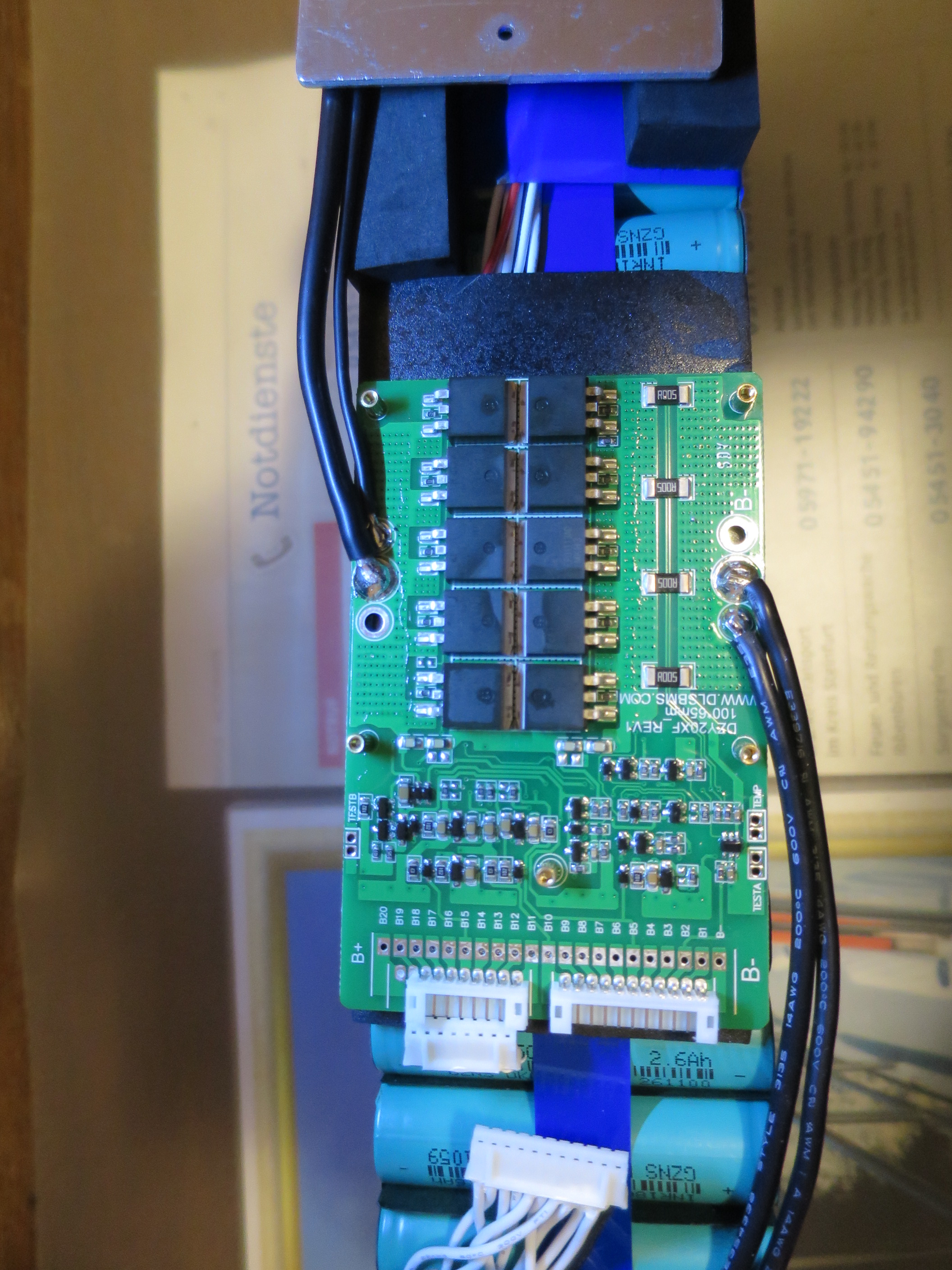 Über die Zellen an sich mache ich mir allerdings weniger Sorgen: Der Akku hat eine Geometrie von 16s8p bei 2500mAh je Zelle. Bei Ladeströmen von 20A lädt die Zelle also auch nur mit 1C, was ein normaler Lithium-Akku ohne Probleme abkönnen sollte. Ich glaube, dass für die kurzen Zeiten - es geht ja de facto nie um längere Zeiten als 10 Sekunden - auch 1,5C bis 2C verträglich wären, solange die maximale Spannung nicht überschritten wird.