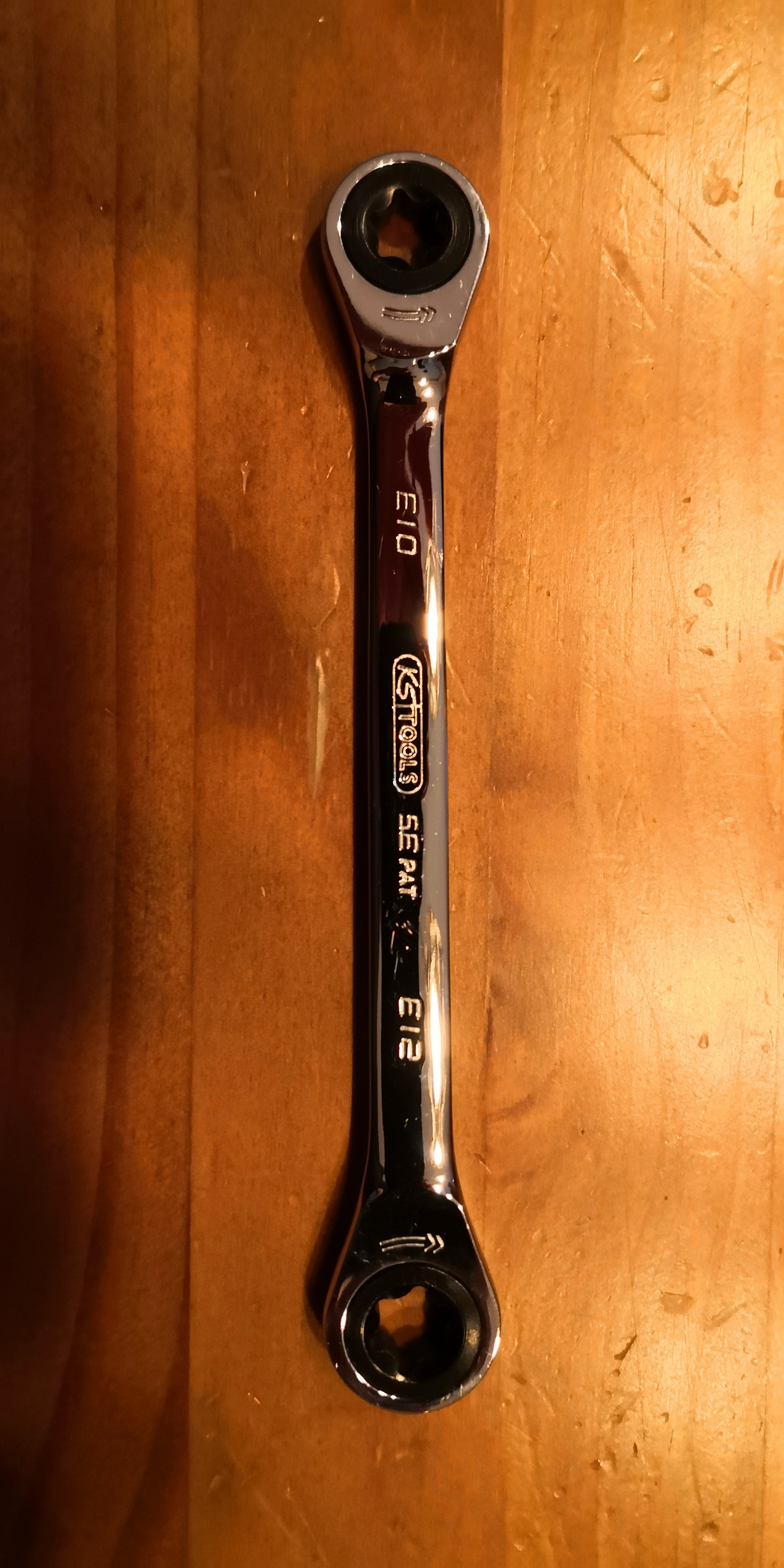 Aus dem obigen Set braucht man eigentlich nur einen “Schlüssel” zum Glück, den E10/E12 Ratschenschlüssel für Außentorx-Schrauben !