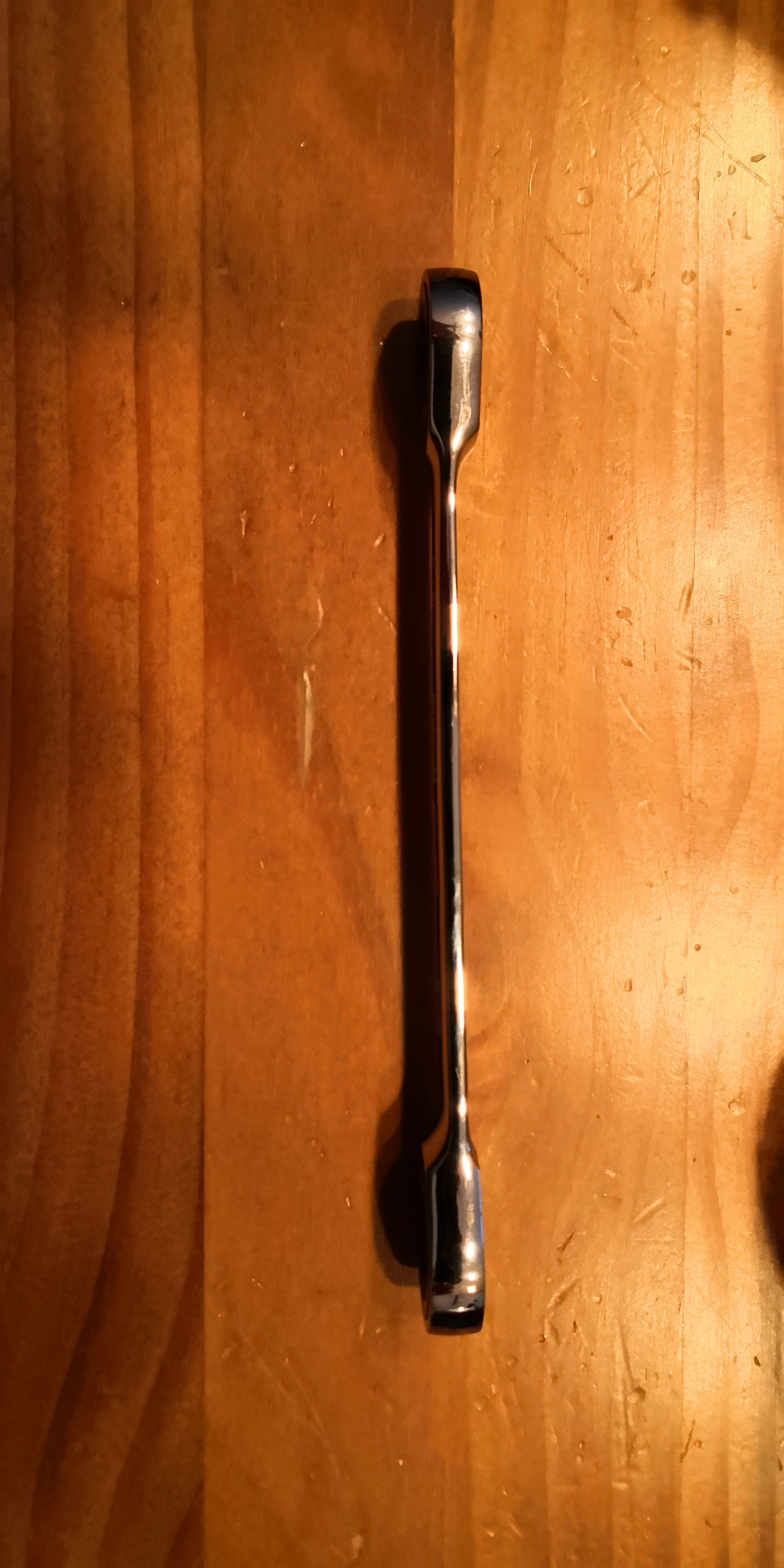 Danach mit dem Doppelratschen-Außentorx-Schlüssel E10 / E12 wieder unters Auto und die Schrauben gingen wunderbar los, als wären sie gestern erst eingebaut worden. Also E12 für die großen am Wellrohr / Kat, dann einfach den Schlüssel umdrehen und die kleinere mit der E10 Seite losdrehen.