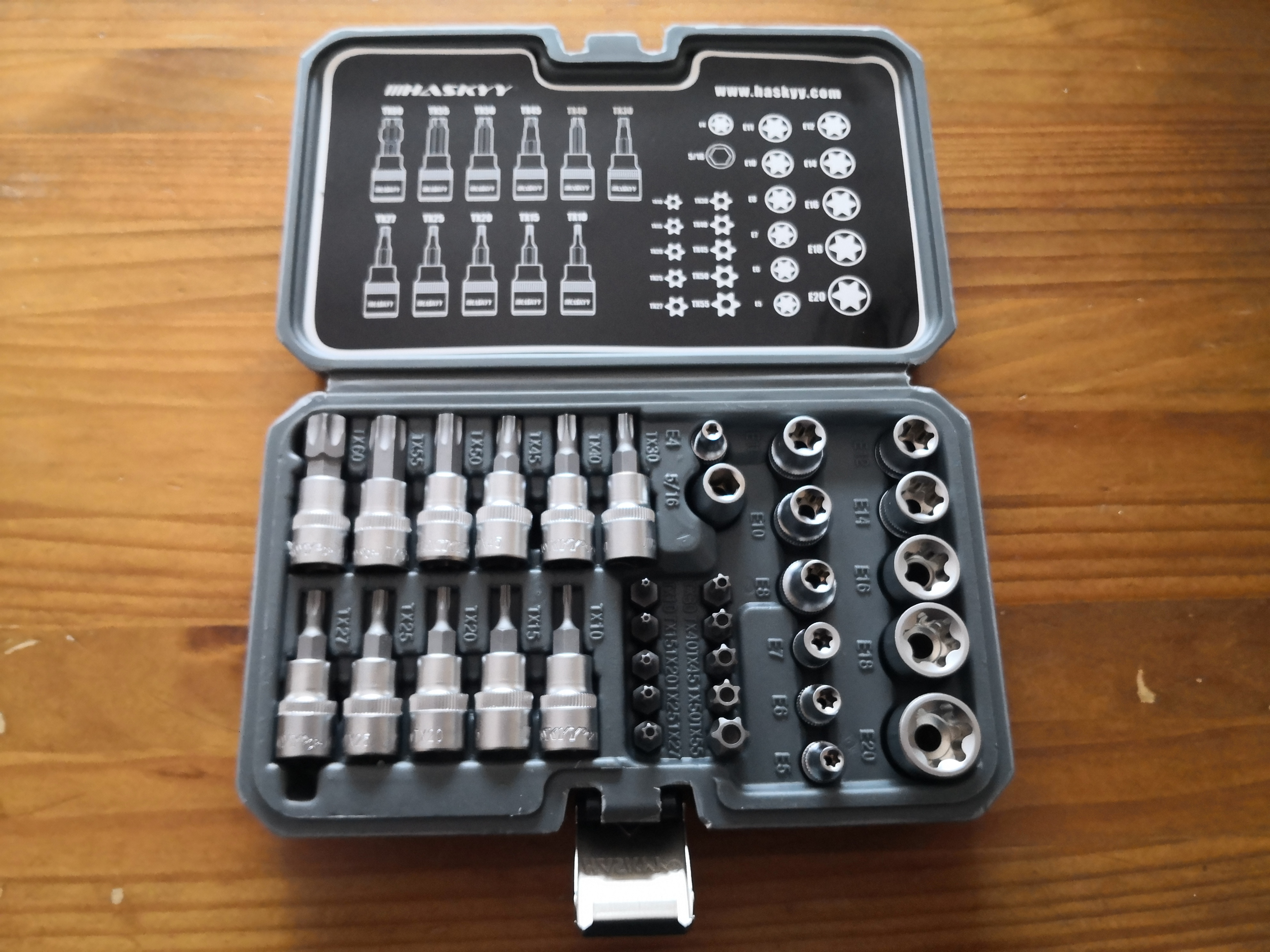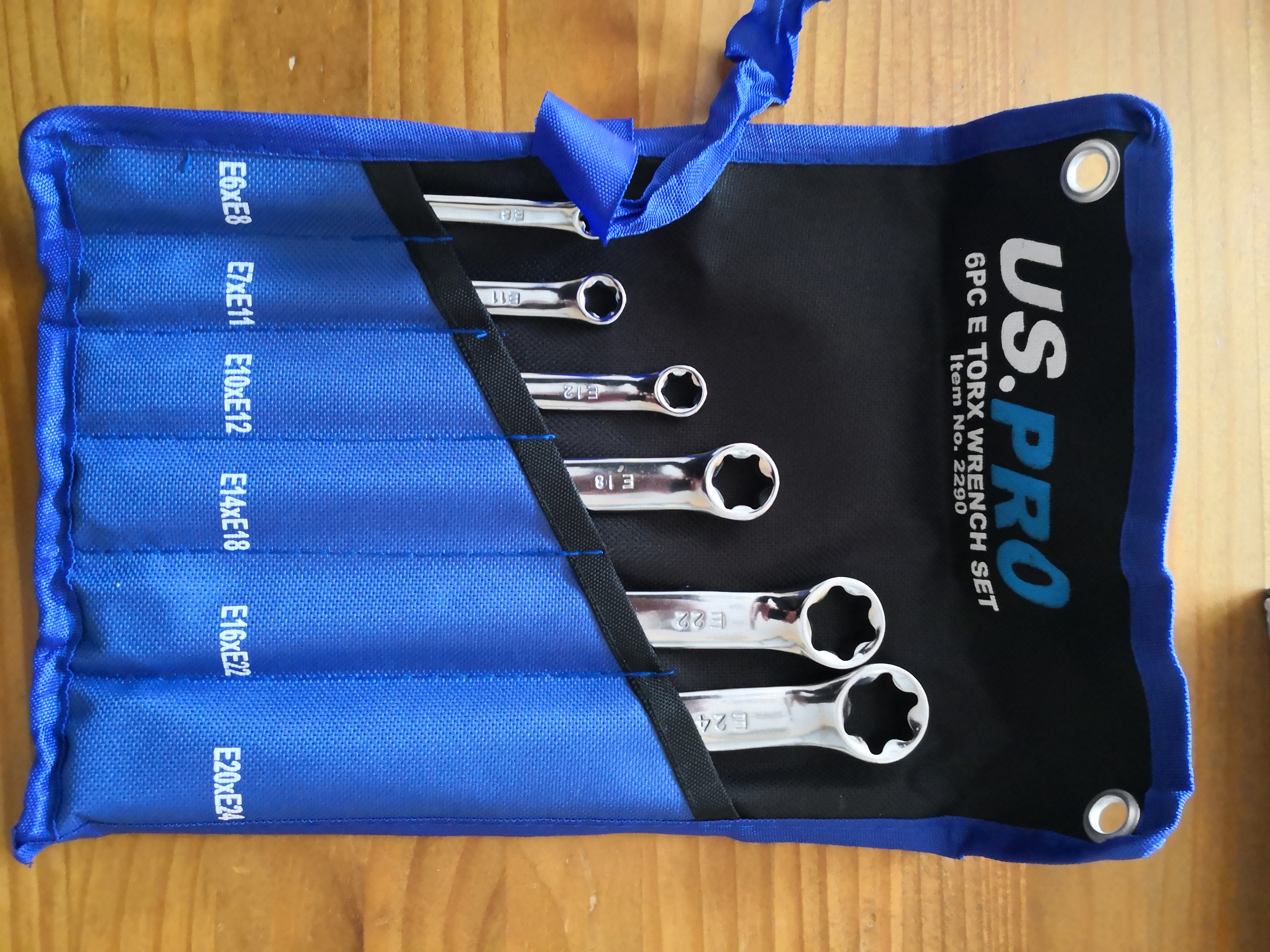 Da ich aber nicht genau wusste welche Größe ich brauche, ich lieber mein eigenes Werkzeug erweitere, statt das Geld zur Werkstatt zu tragen habe ich mein Torx-Kontingent vervollständigt und gleich drei Sets bestellt.