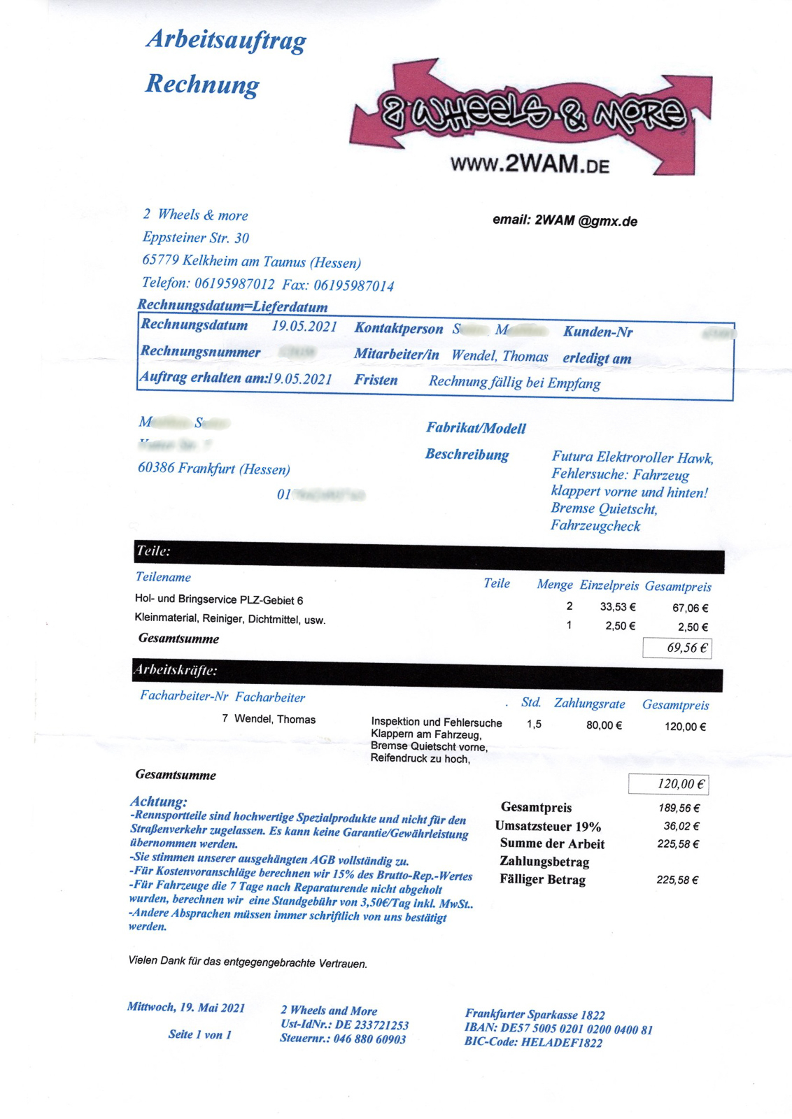 Hier noch zum Beweis. Und auch wenn ich schrieb, der Roller hatte nichts ernshaftes, was ja für Sunra/Futura spricht, so muss ich erwähnen das sich diese Inspektion absolut gelohnt hat. Nicht nur wegen dem "guten" Gefühl. Es ist kein anderes Fahrzeug, aber ein bisschen schon