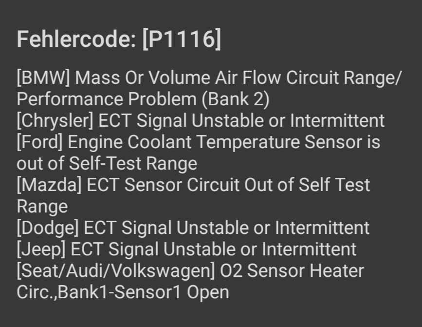 ...zumindest P1... es gibt auch generische P-Fehler, i.d.R. P0...Pfriemler hat geschrieben: Di 27. Dez 2022, 15:19 P-Codes sind eigentlich immer Hersteller-spezifisch.