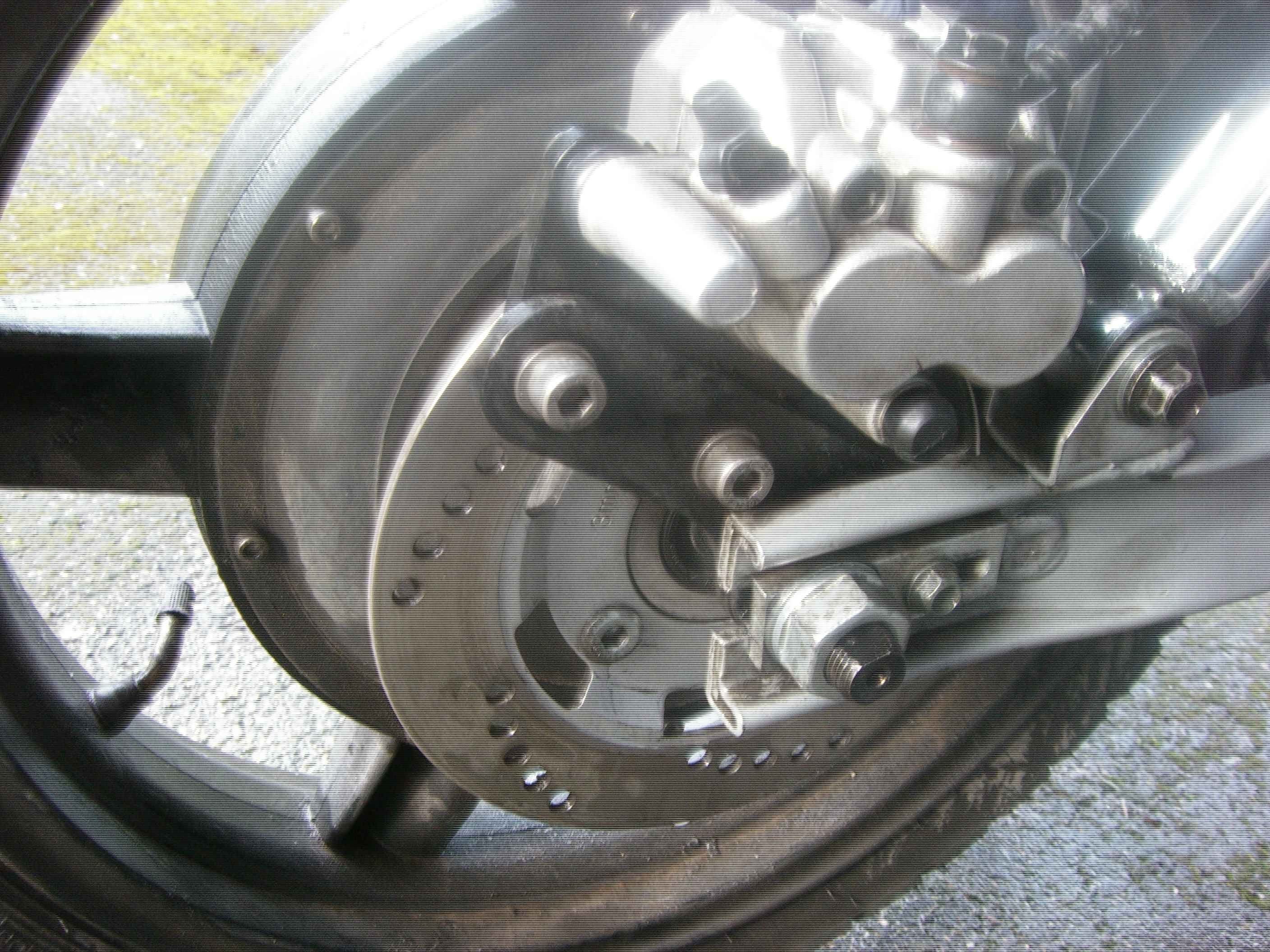 So, hier noch ein Bild von der hinteren Bremsscheibe. Sorry, die Bildquali ist nicht die beste, in der Vergrößerung sieht man so Streifen, die Kamera hat nen Schaden.