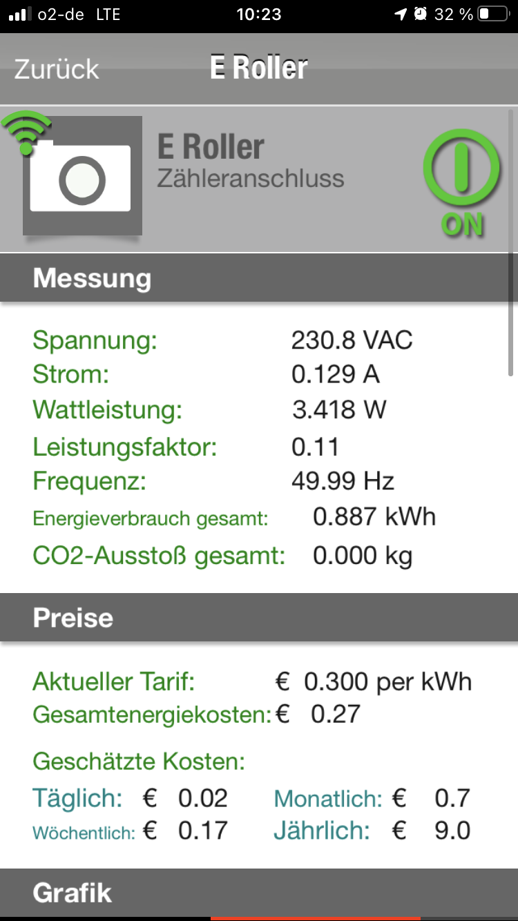 LG hängt weiter am Stromnetz, geeichter Stromzähler läuft einige Std. laaaangsam weiter und so kommen noch ein paar W hinzu....