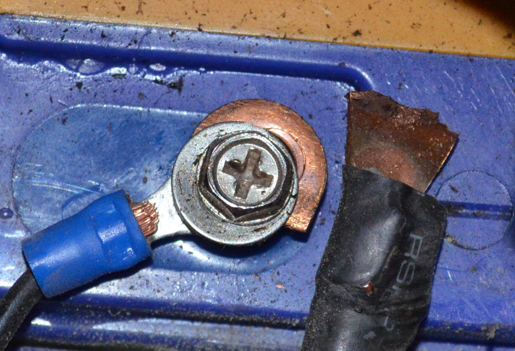 Die blaue Ringöse auf dem Bild ist übrigens nur die Messleitung. Und bei denen ist alles i.O., habe ich alle geprüft.
