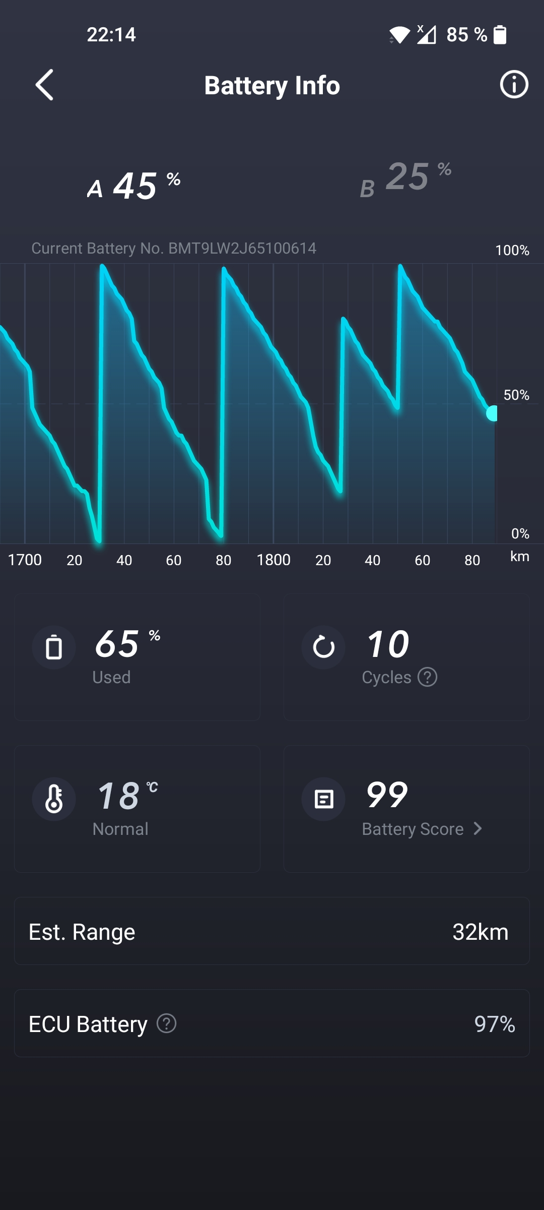 Das Problem waren am Ende aber nicht nur die Zyklen, sondern das trotz aller Kalibrierungsversuche die Ladestände der Akkus voneinander weggelaufen sind und damit die Reichweite nicht mehr gepasst hat.