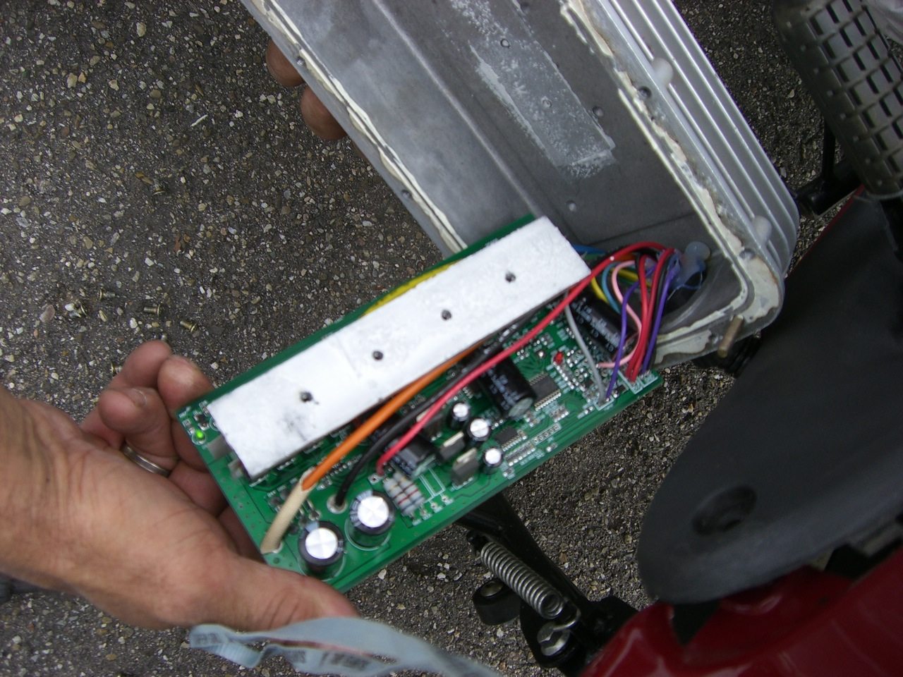 Hi, ich habe vom Hersteller meines Rollers eine simple Anweisung zur Erhöhung der Geschwindigkeit bekommen. Er meinte, ich solle ein Kabel im Controller lösen. Der Ausbau des Controllers gestaltete sich sehr mühsam und dann kam die Enttäuschung: In meinem Controller sehen die Kabel anders aus als auf seinem Foto. Bei mir sind alle Kabel fest verlötet, da kann man keines lösen. Ich nehme deshalb an, dass es entweder gar nicht geht oder dass sich dieses Kabel eher in der Sitzbank befindet. Ich habe die entsprechenden Bilder angefügt. Wäre super, wenn mir jemand weiterhelfen könnte, das Problem zu lösen.