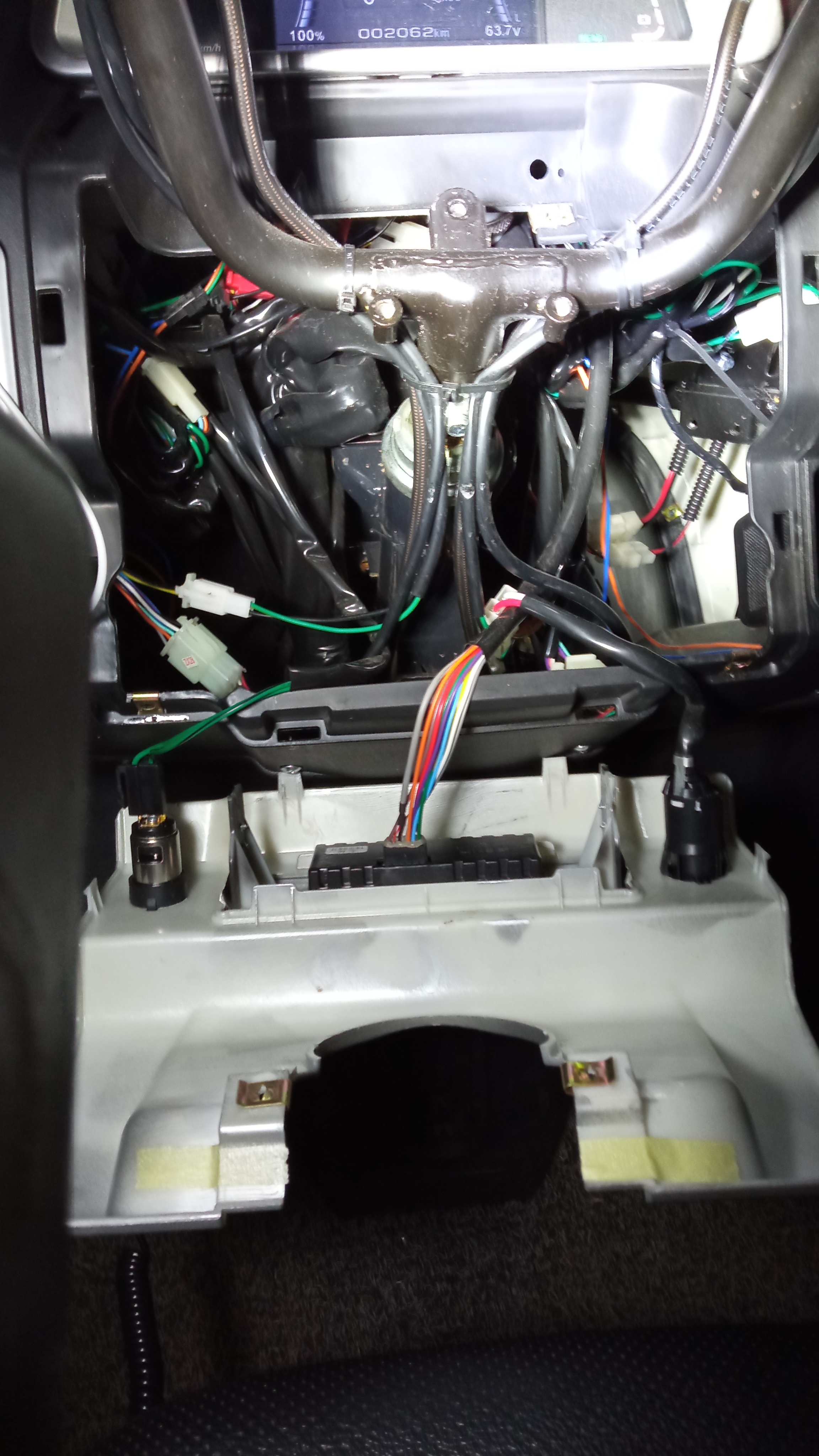 Nach dem ich die Verkleidung rund um den Lenker abgeschraubt hatte kam man ganz gut ran...